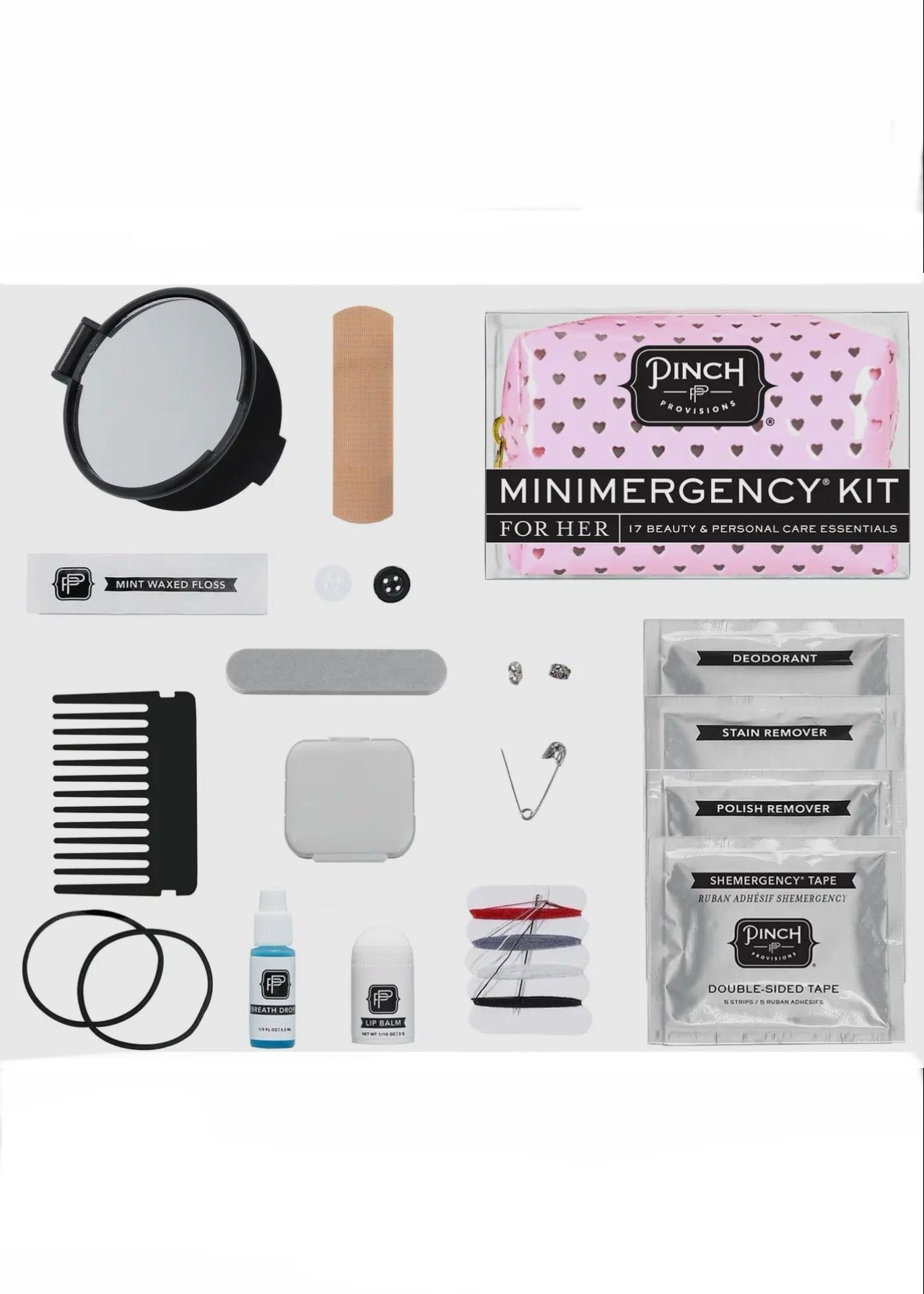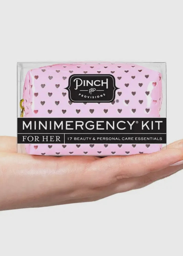 Fall in love with the Sweetheart Minimergency® Kit by Pinch Provisions®. With 17 beauty, personal care, and style essentials, this perforated patent pouch contains everything a gal needs...IN A PINCH®!