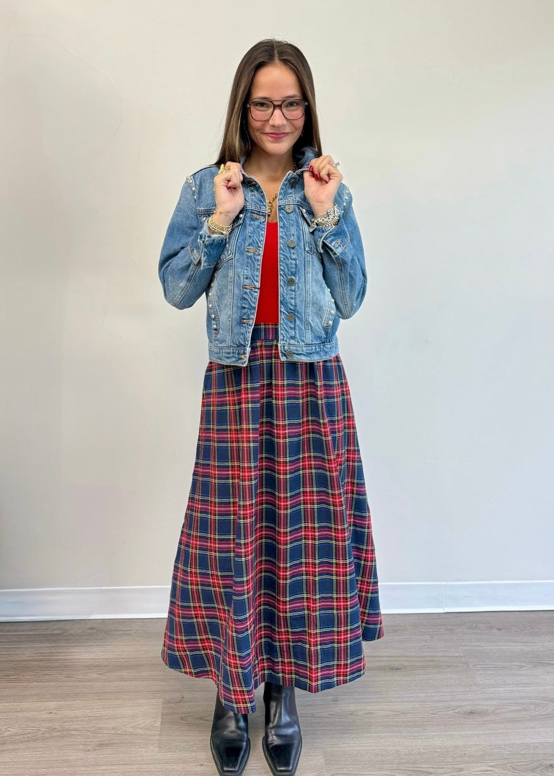 Featuring a timeless buffalo plaid pattern, this skirt adds a touch of festive charm to any outfit