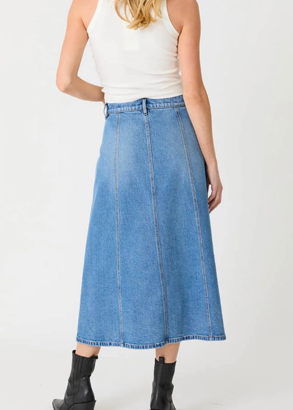 Studded details on the front give this skirt a stylish edge, making it an effortless piece to elevate your everyday wardrobe.