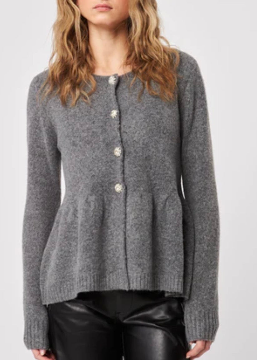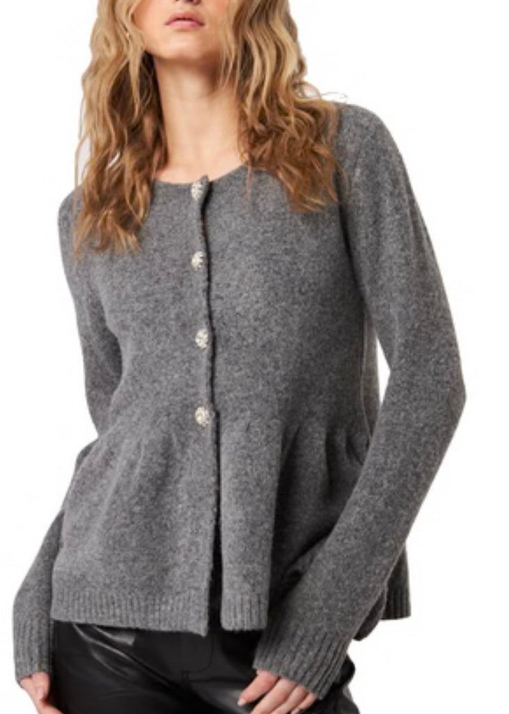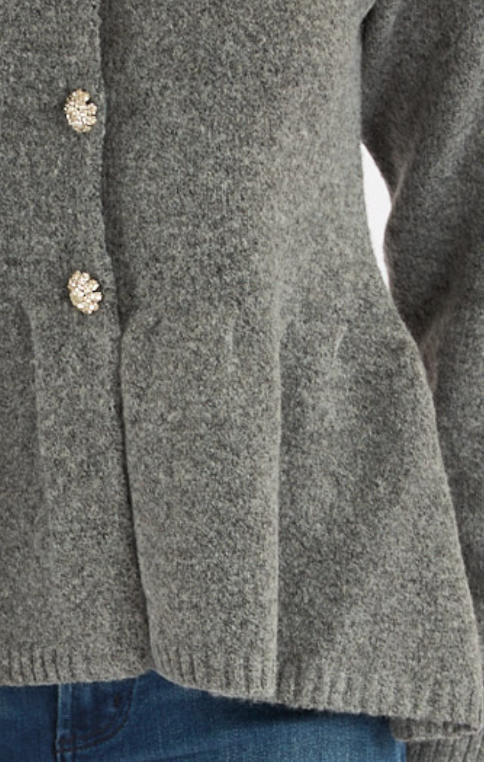 The Davie Cardigan by John and Jenn adds polish with a flattering peplum hem and sparkling crystal-look buttons that catch the light beautifully