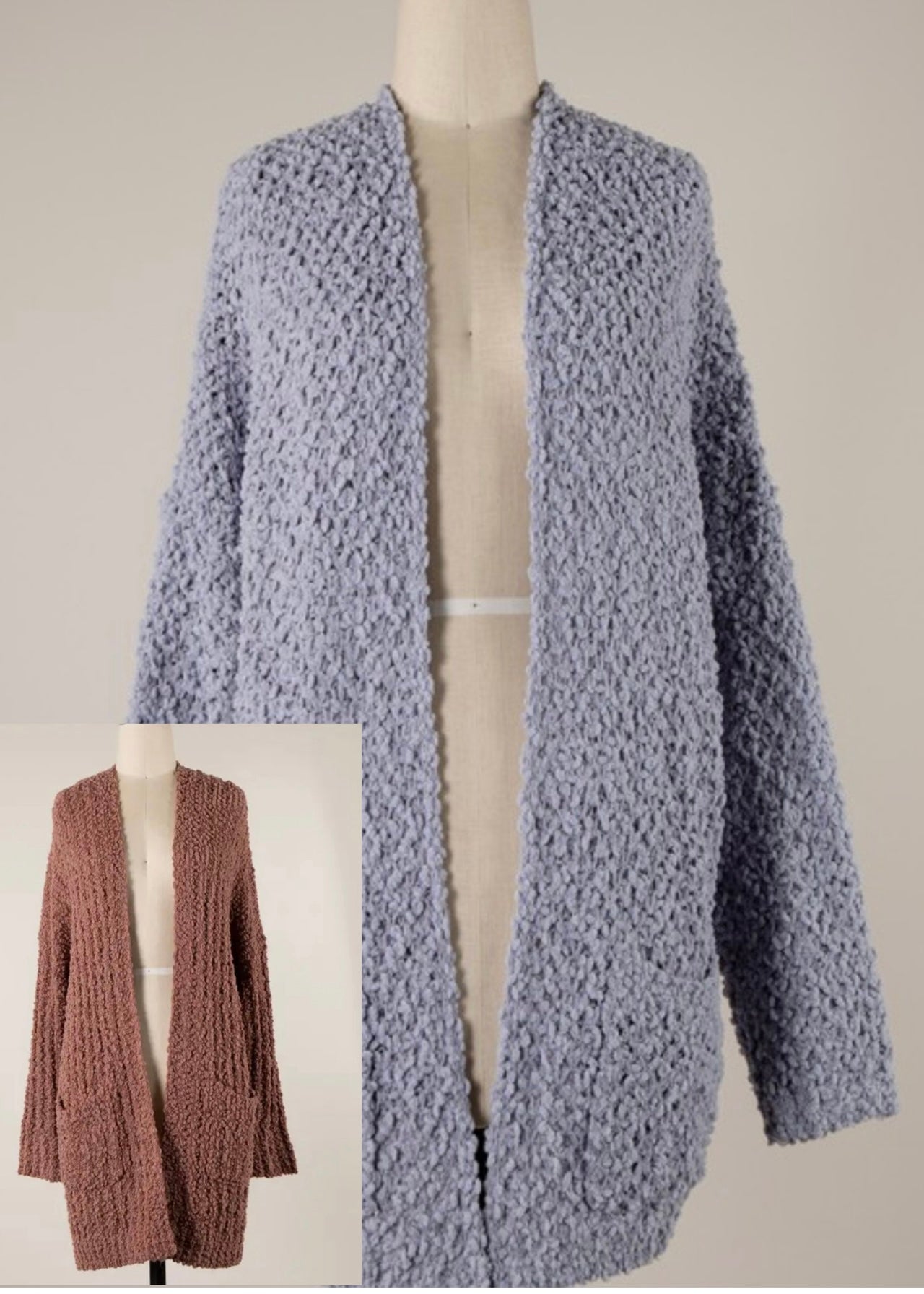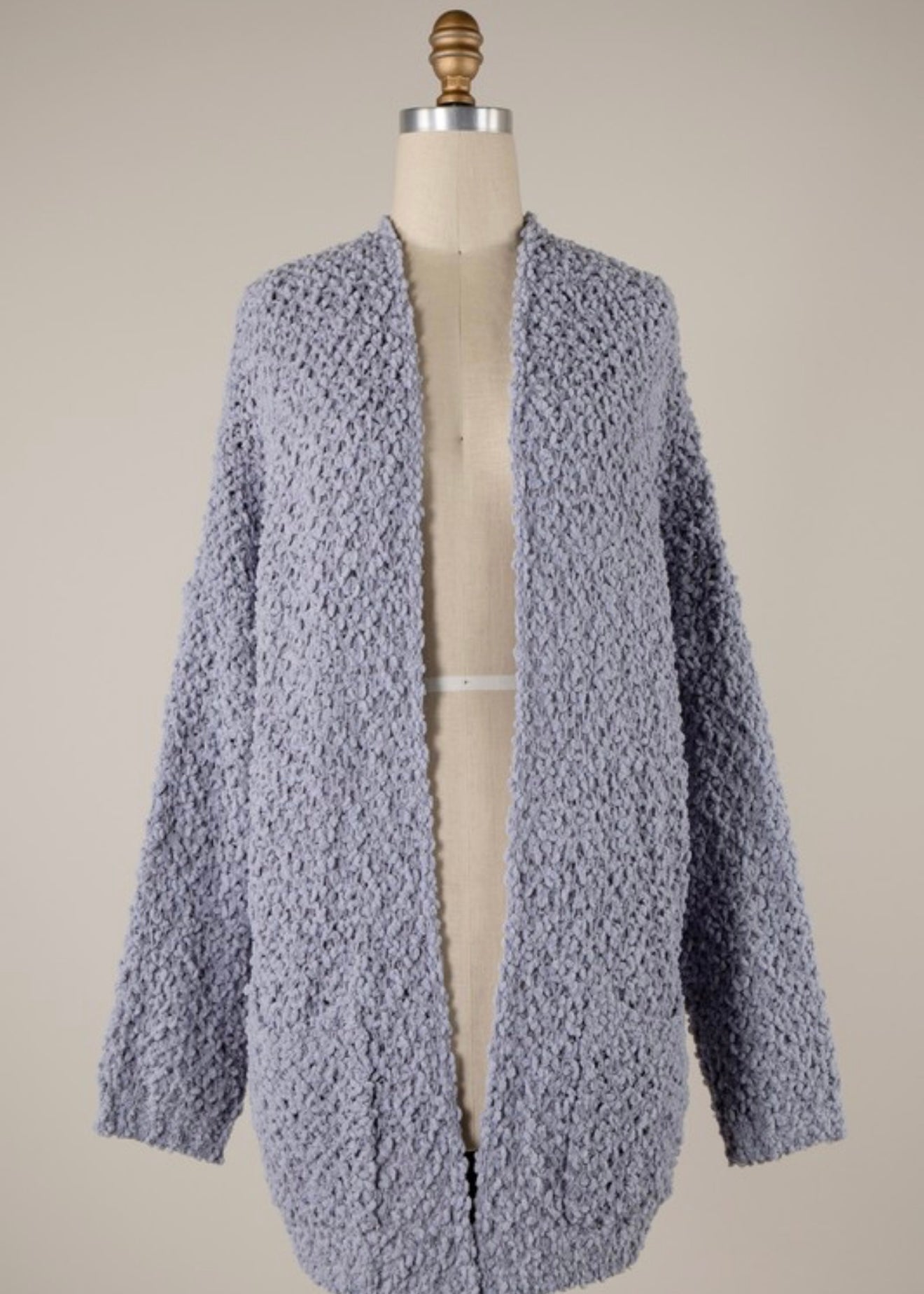 Popcorn Knit Cardigan - Periwinkle / S/M is backordered and will ship as soon as it is back in stock.