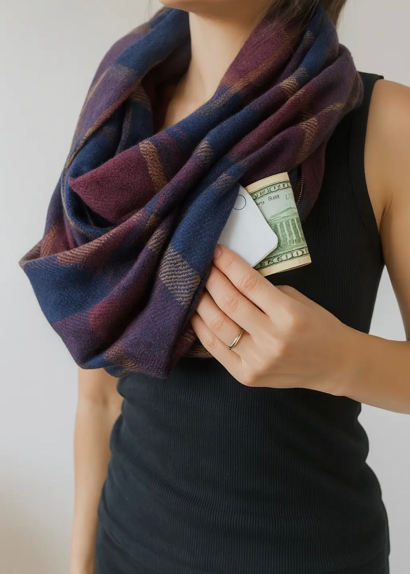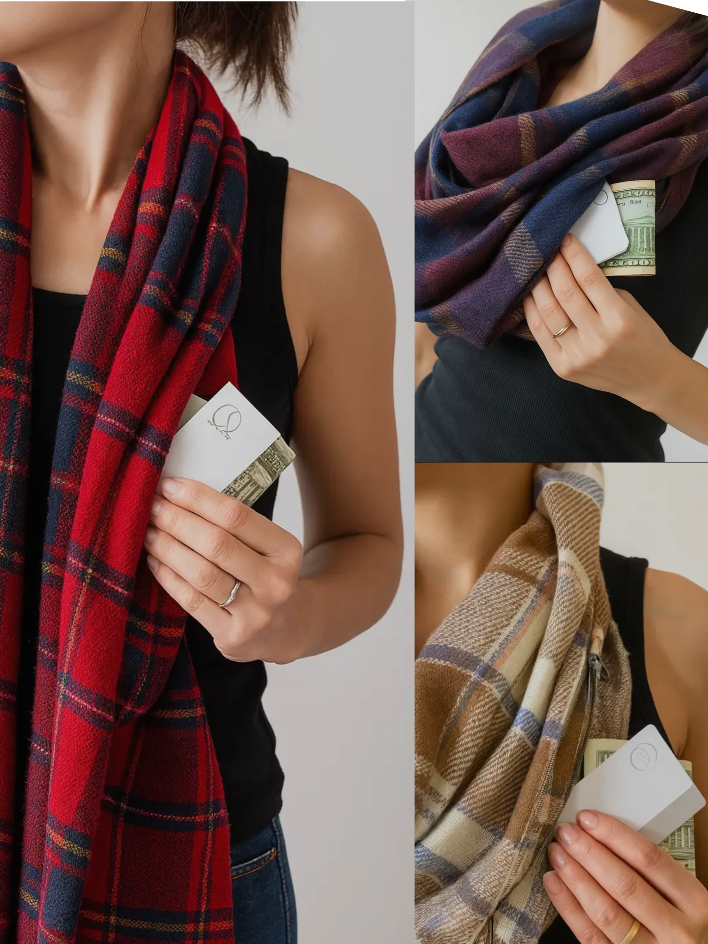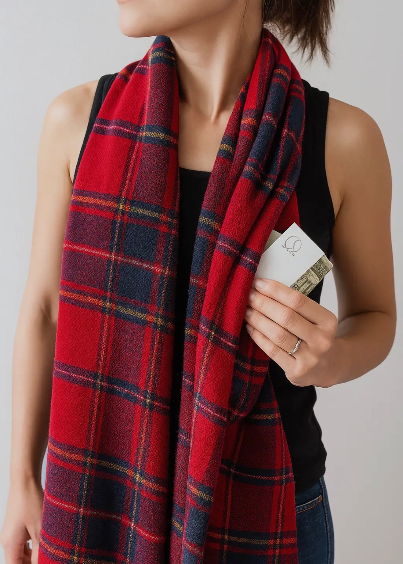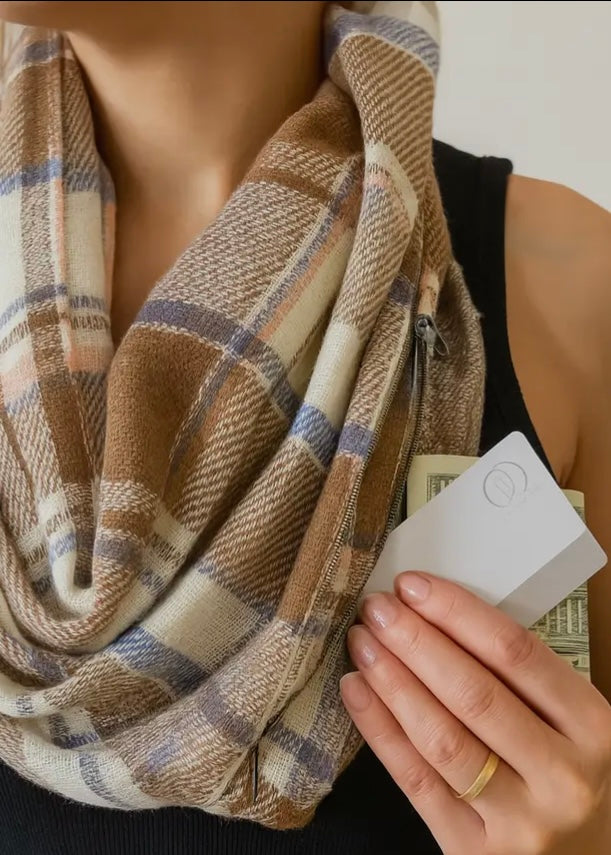 Zipper Pocket Infinity Scarf - Red Combo is backordered and will ship as soon as it is back in stock.