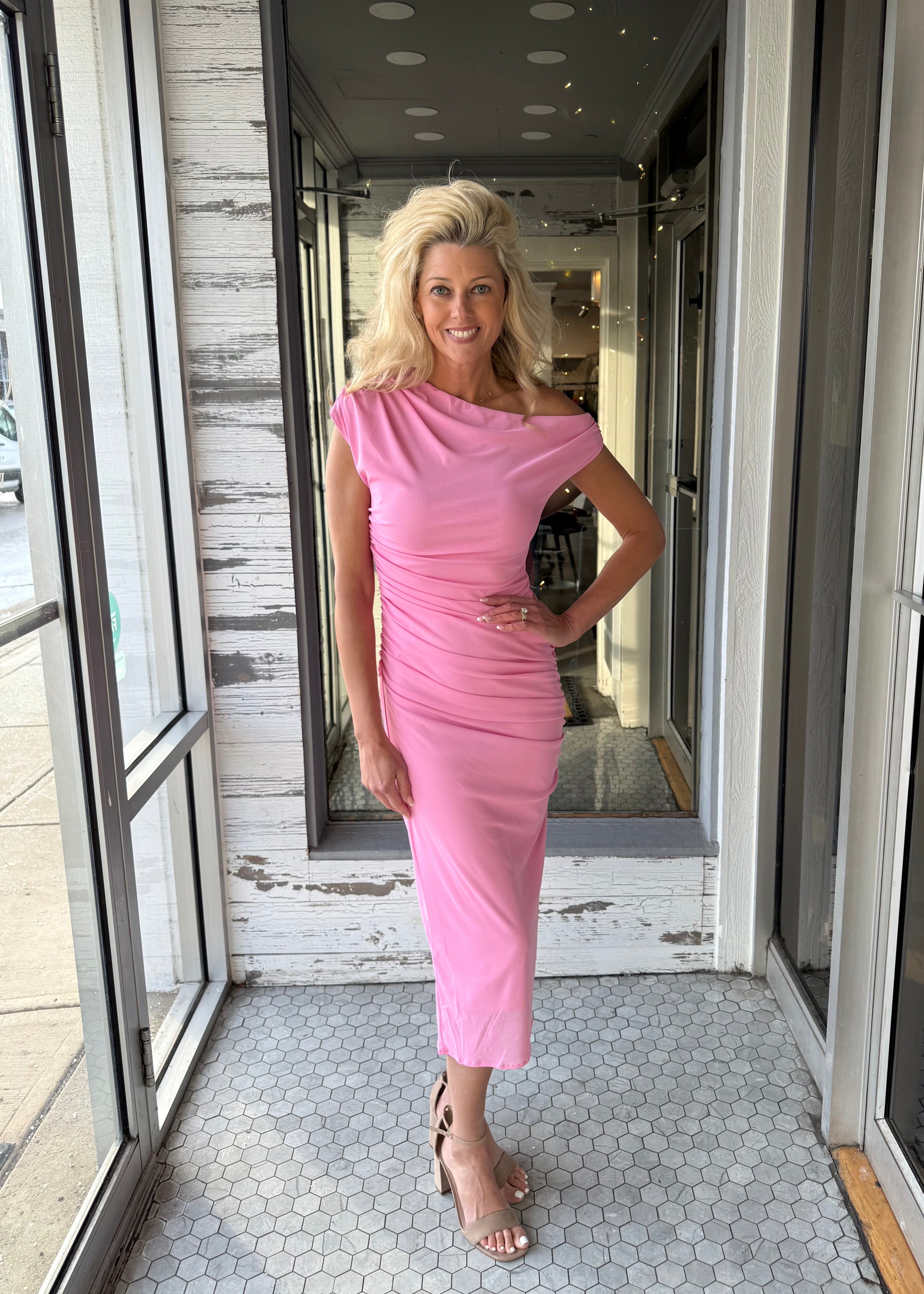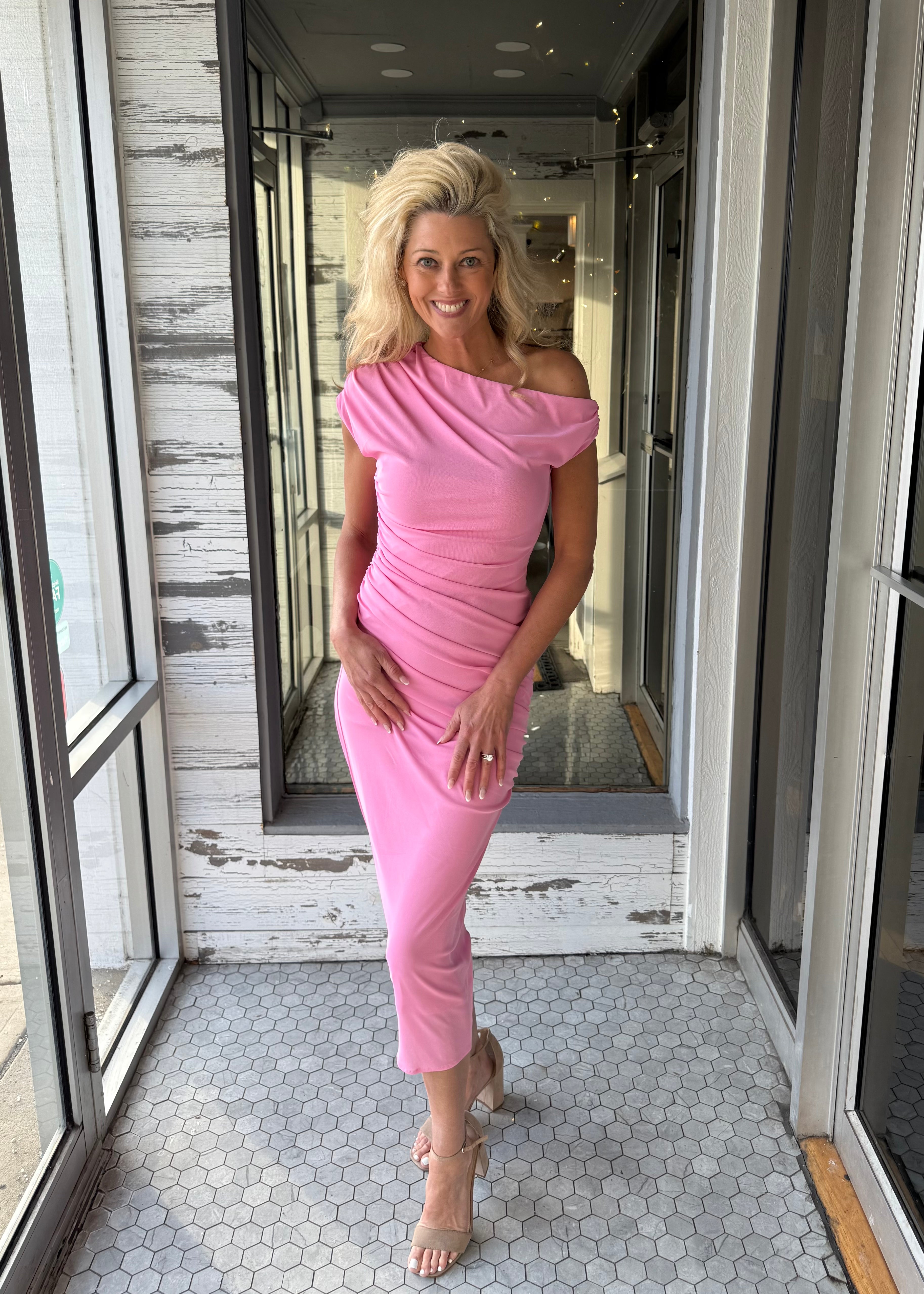 The Gracelyn Bodycon Midi Dress is your go-to for turning heads with effortless edge. Crafted from breathable power mesh, this stunner features an asymmetrical shoulder neckline that adds just the right amount of sass, paired with short sleeves and strategic ruching that flatters every curve. The pullover construction keeps things simple while the bodycon silhouette hugs you in all the right ways. Perfect for nights out, date nights, or whenever you want to feel confident and chic.