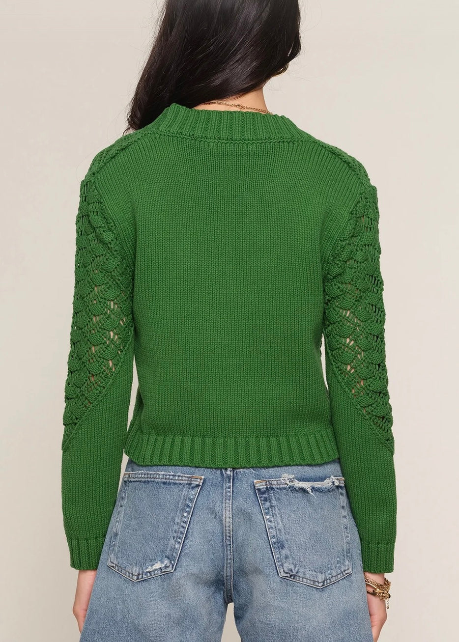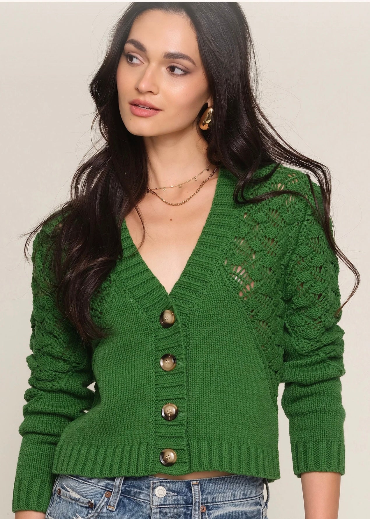 The Amalda Cardi is made from a soft, cotton yarn. It has a slim fit and v-neck