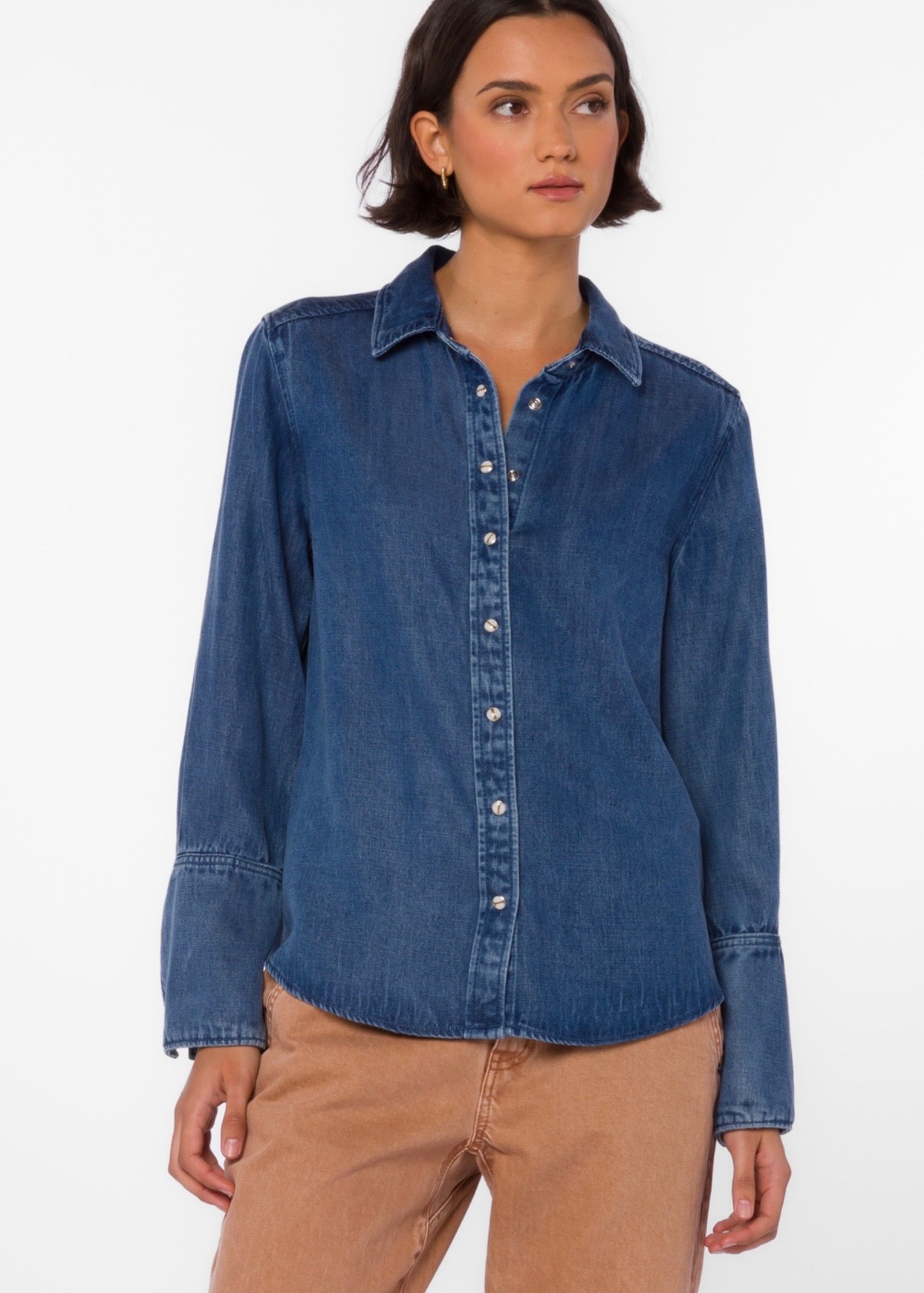 • Effortlessly cool meets timeless style with the Amaya Denim Shirt. This button-up is your new go-to for laid-back vibes. Crafted for that perfectly worn-in feel, it's the kind of piece that works as hard as you do, whether you're running errands or making an entrance. A wardrobe essential that never goes out of style.