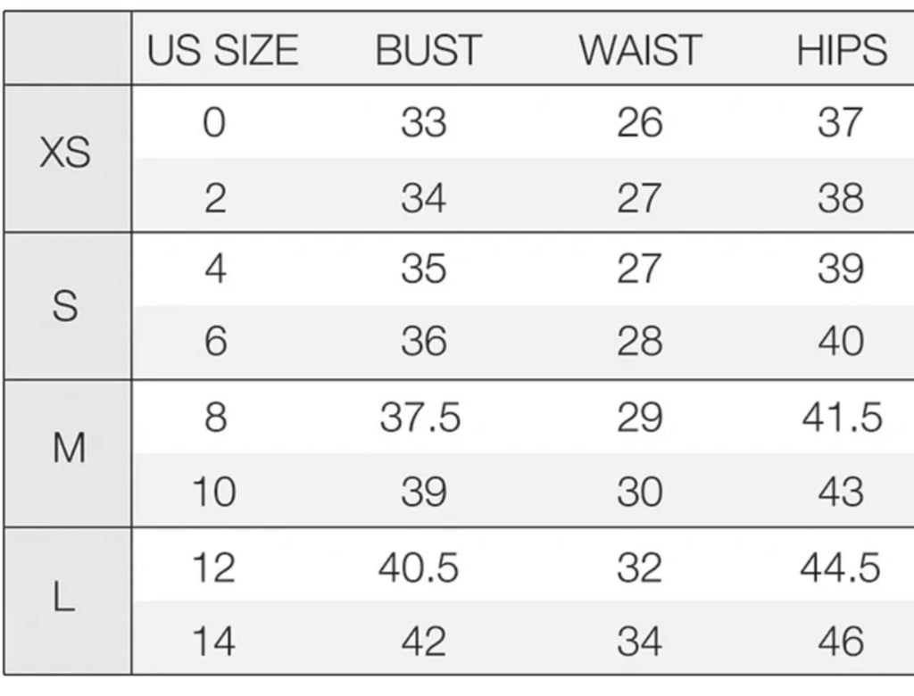 Show size chart