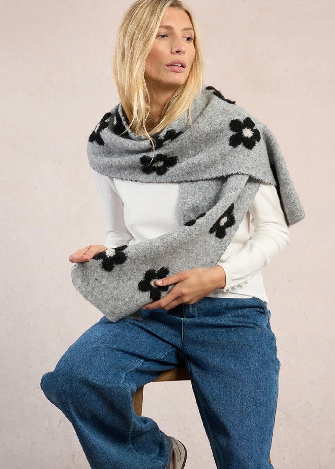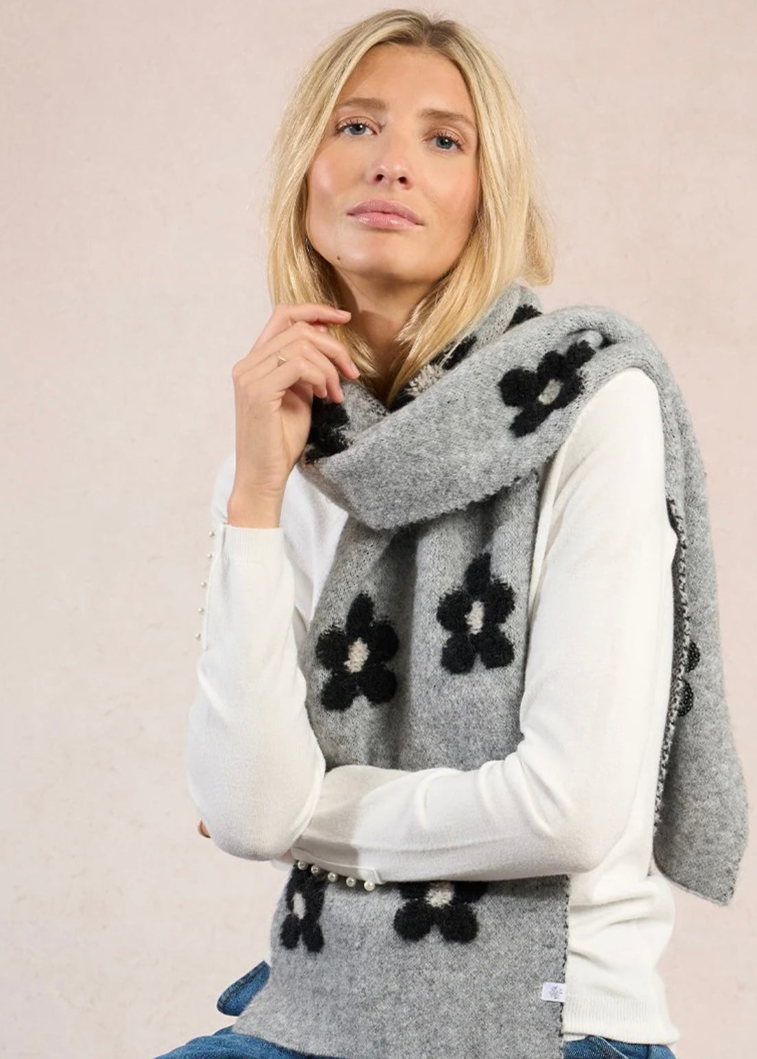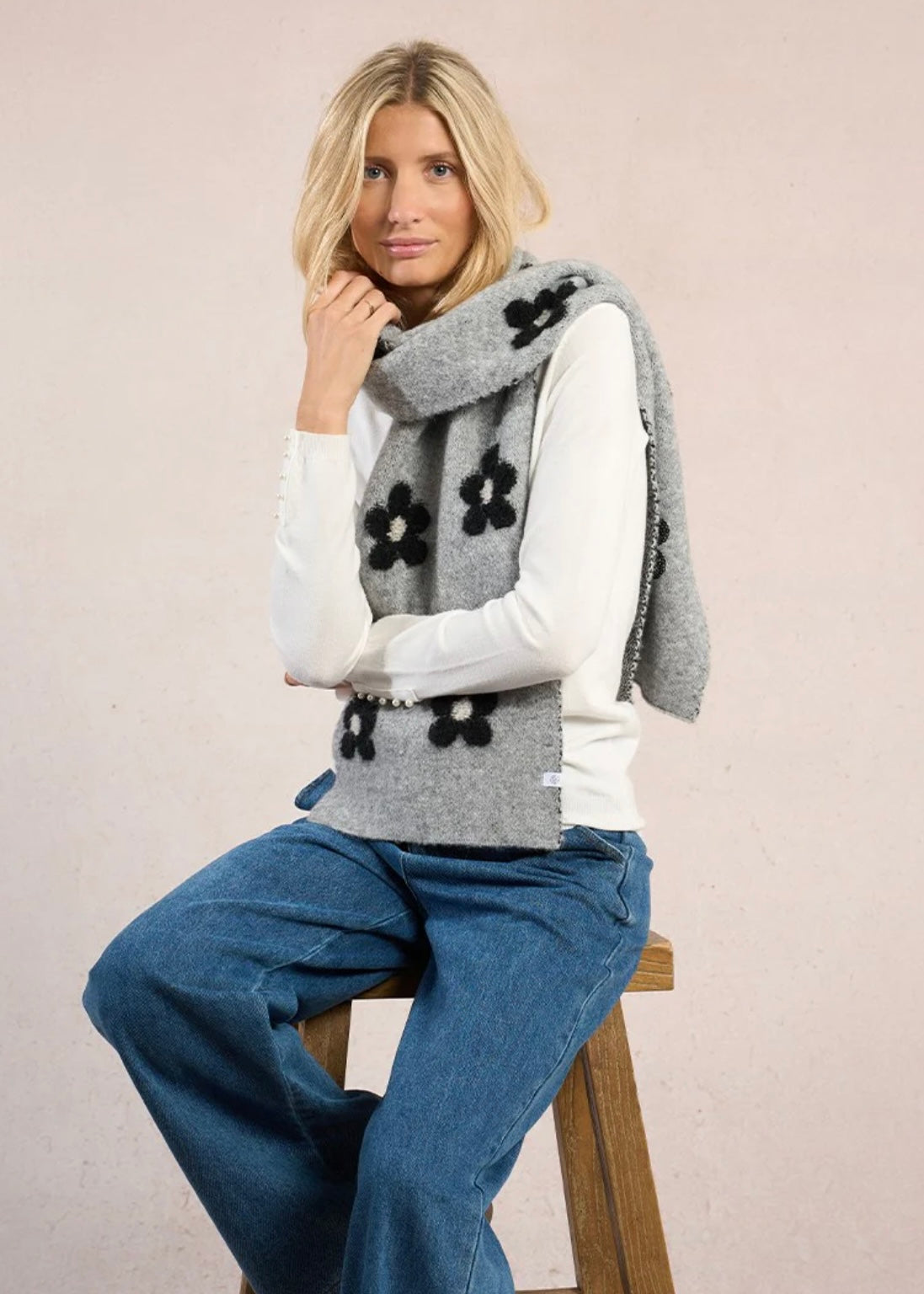 Add a touch of sparkle and fun to your outfit with this knitted scarf, featuring a whimsical rhinestone flower pattern. Soft and cozy, it’s the perfect playful accessory to brighten chilly days while keeping you warm and stylish.