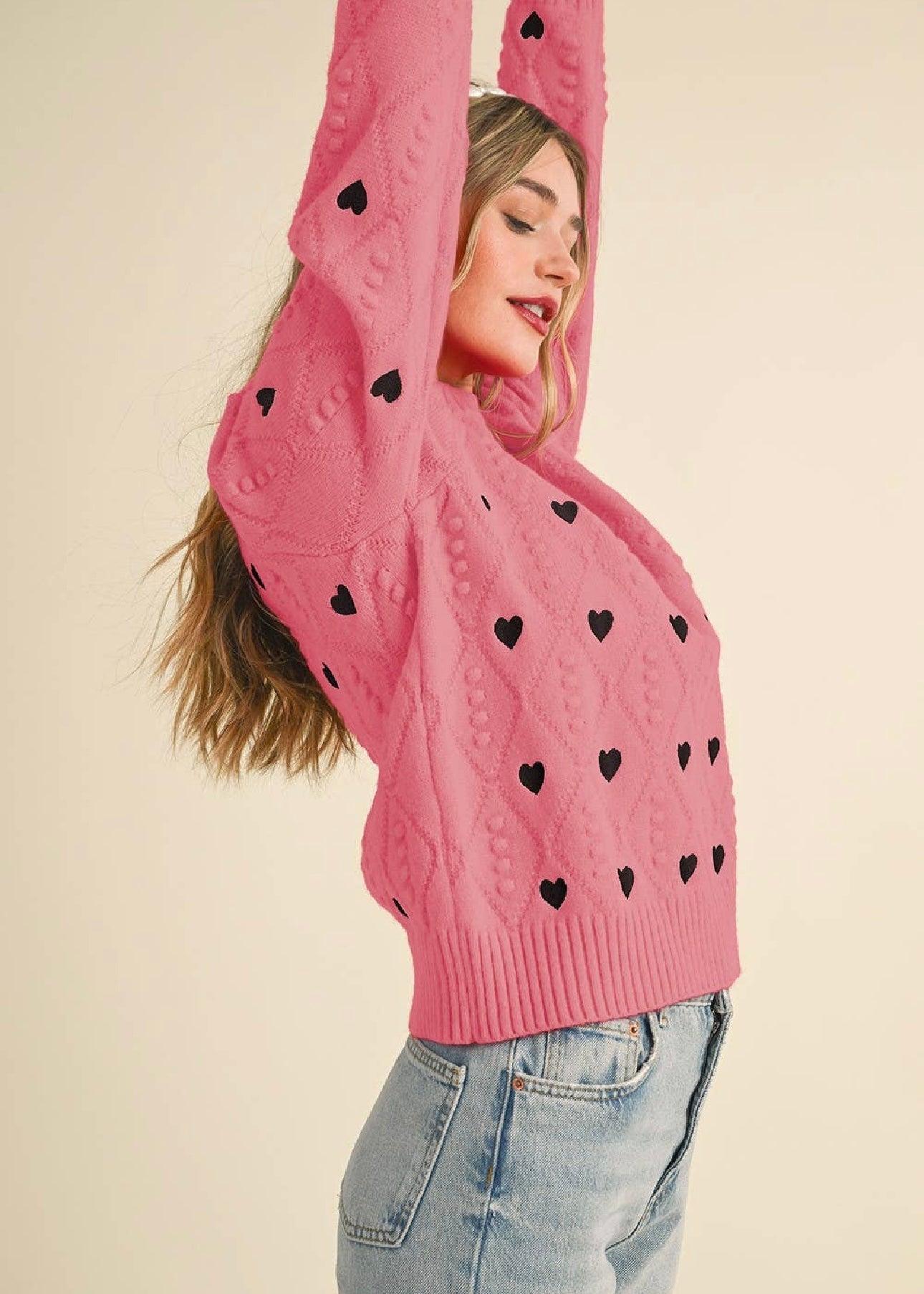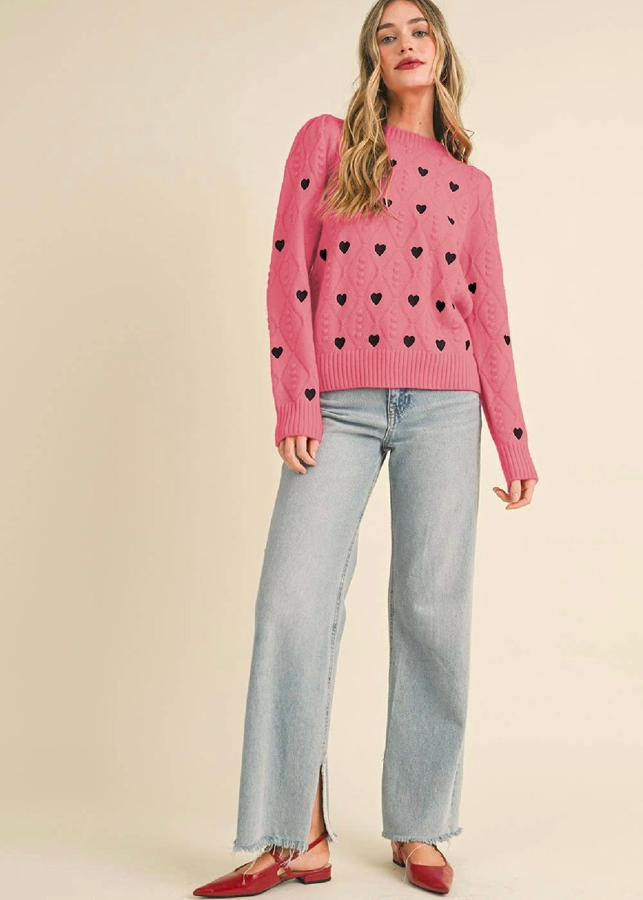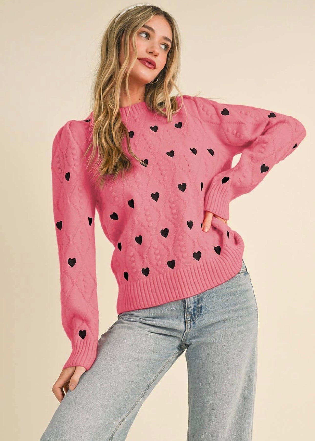 Emery Embroidery Heart Sweater - S / BUBBLEGUM BLACK is backordered and will ship as soon as it is back in stock.