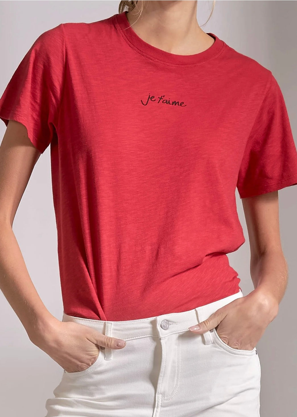 Say it with style. The Je T’aime Tee brings effortless charm to your everyday rotation with its bold script detail and perfectly relaxed silhouette. Cut from soft, breathable cotton, this easy-fitting top balances casual comfort with a French-girl wink.