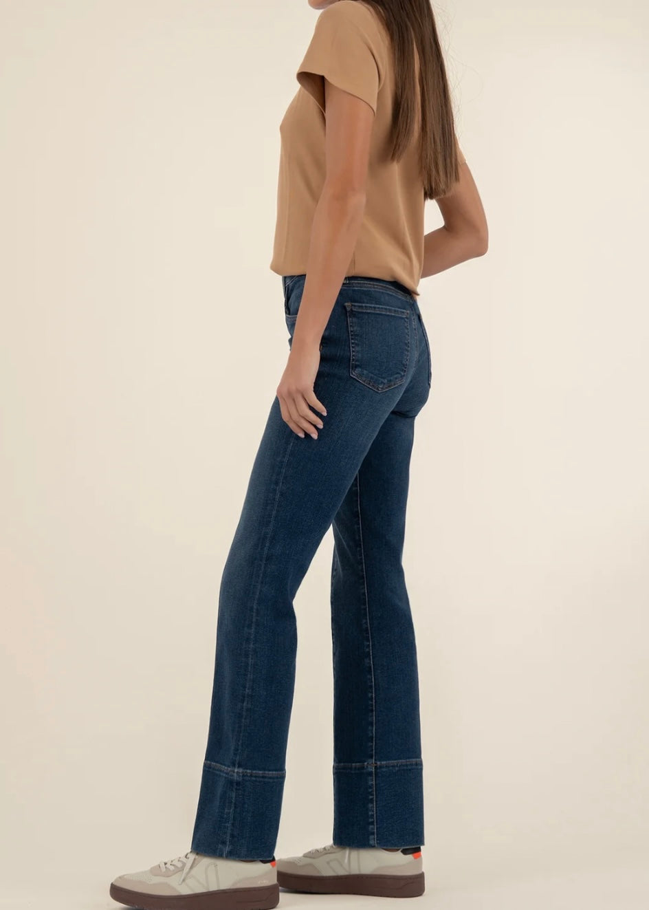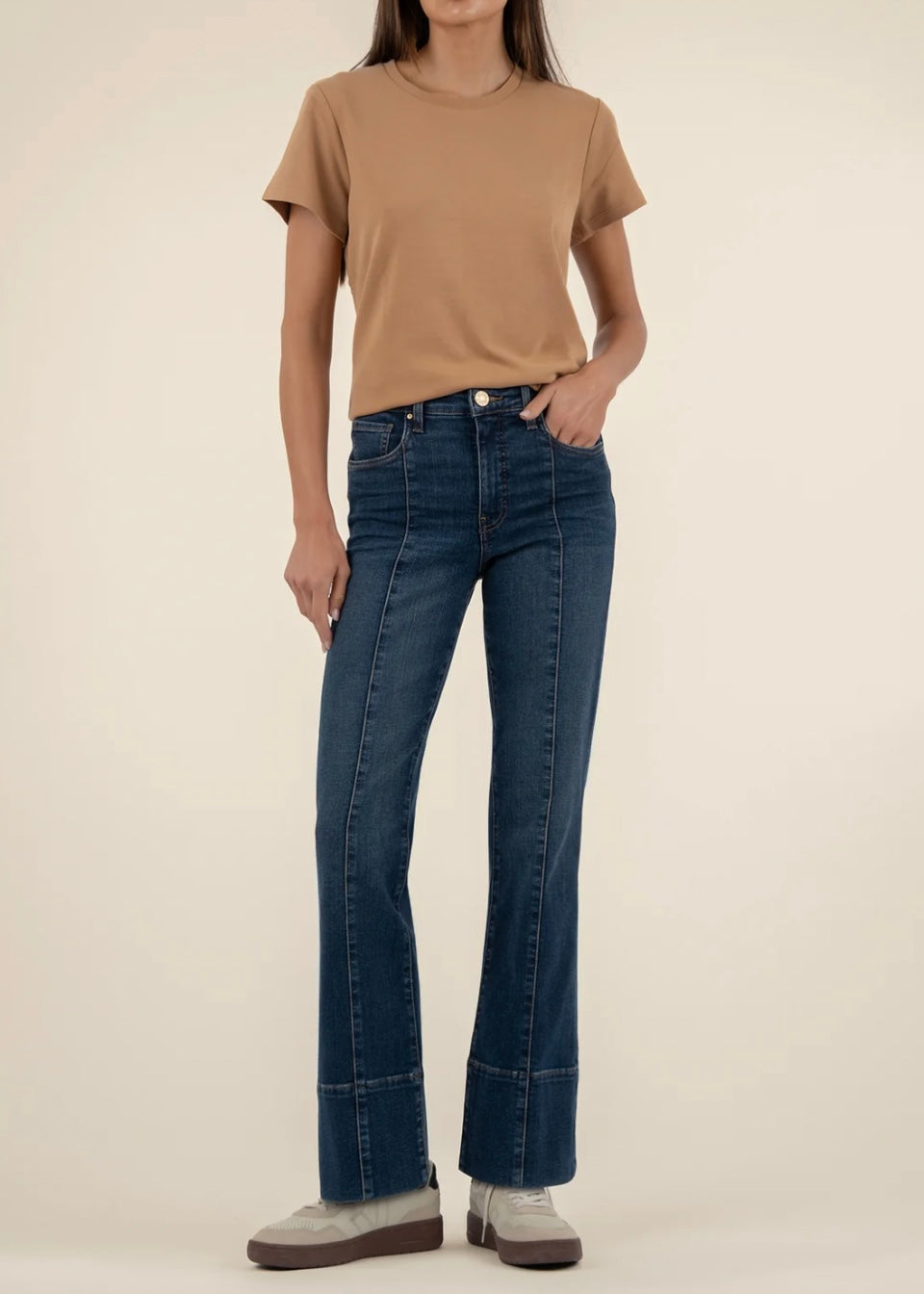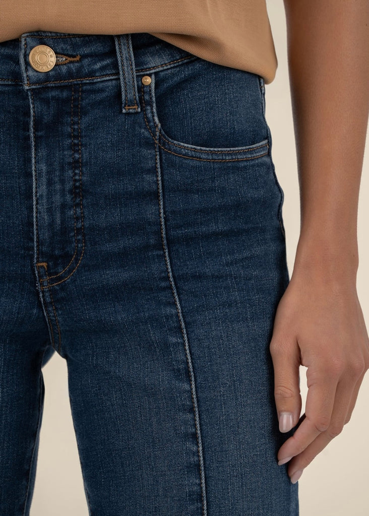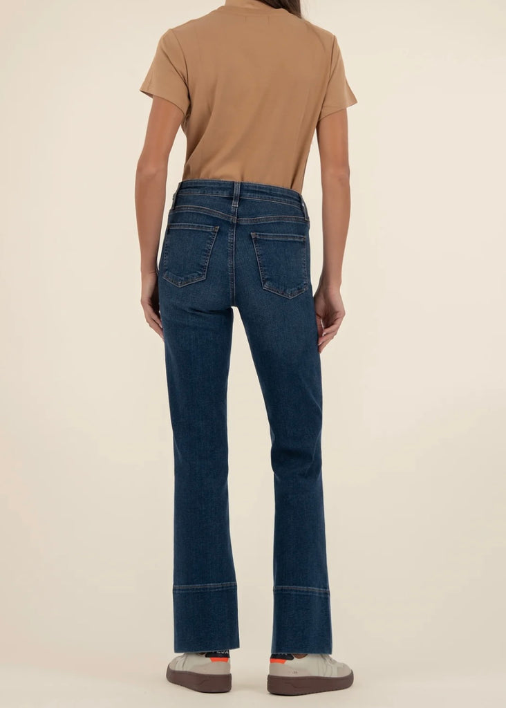 Rock the High Rise Kelsey Fab Ab Ankle Flare jeans for a flattering, trendsetting look. With a dark wash and 5 pockets, these jeans will elevate your style game while keeping you comfortable. Fiercely fashionable and fabulously functional, these jeans are an essential addition to your wardrobe.
