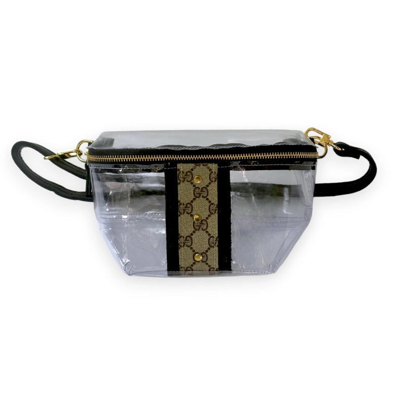 This clear belt bag offers a unique way to showcase your designer style. Made with repurposed Gucci material, perfect for those who want to make a statement while being stadium compliant.