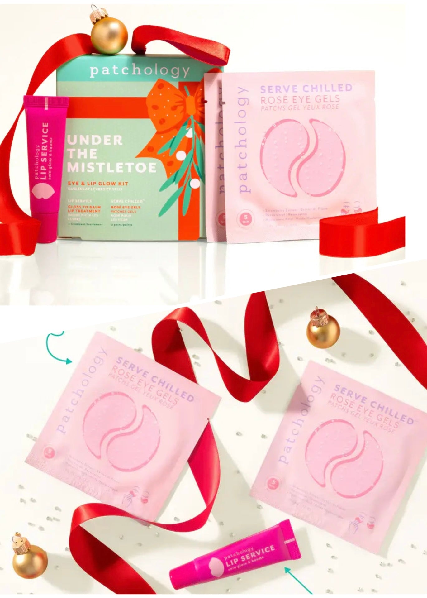 Meet Me Under The Mistletoe Hydrate. Smooth. Plump. Get holiday-party ready with this limited-edition eye & lip glow kit. Featuring two Rosé Eye Gels and our best-selling, top-rated Lip Service Gloss-to-Balm, it’s everything you need for refreshed under-eyes and kissable lips—all in one festive set. Smooth, hydrate, and shine your way through every mistletoe moment.