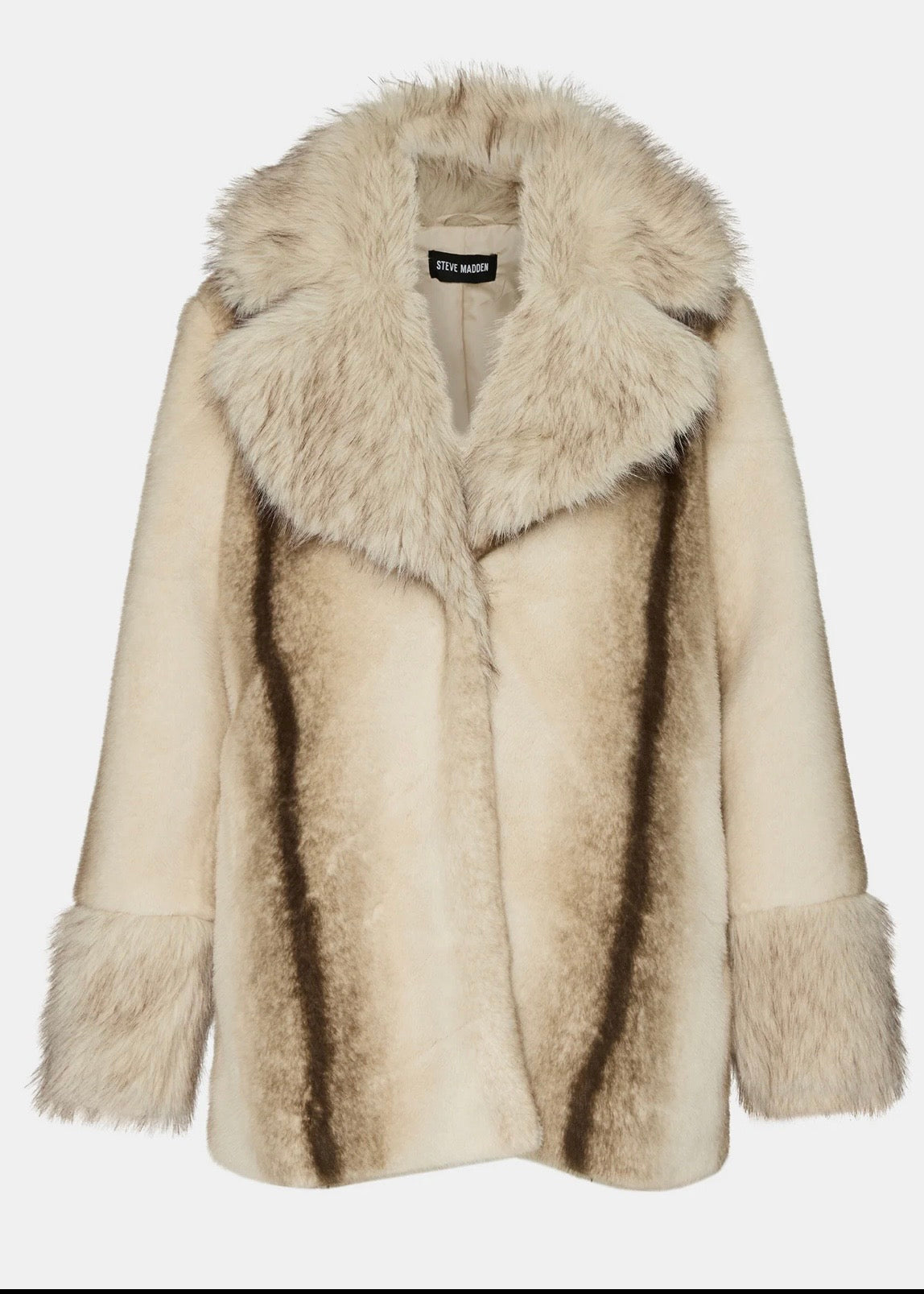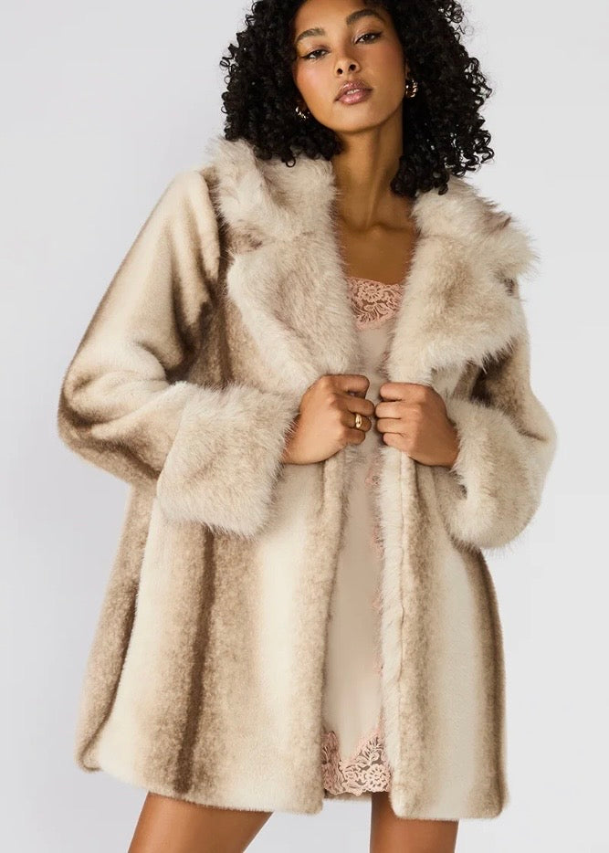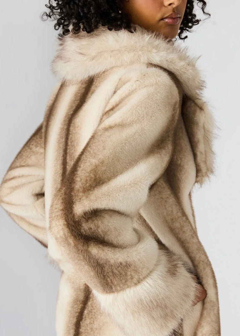 The Carmelita Coat features a long-sleeved design crafted from luxurious faux fur, offering both warmth and style