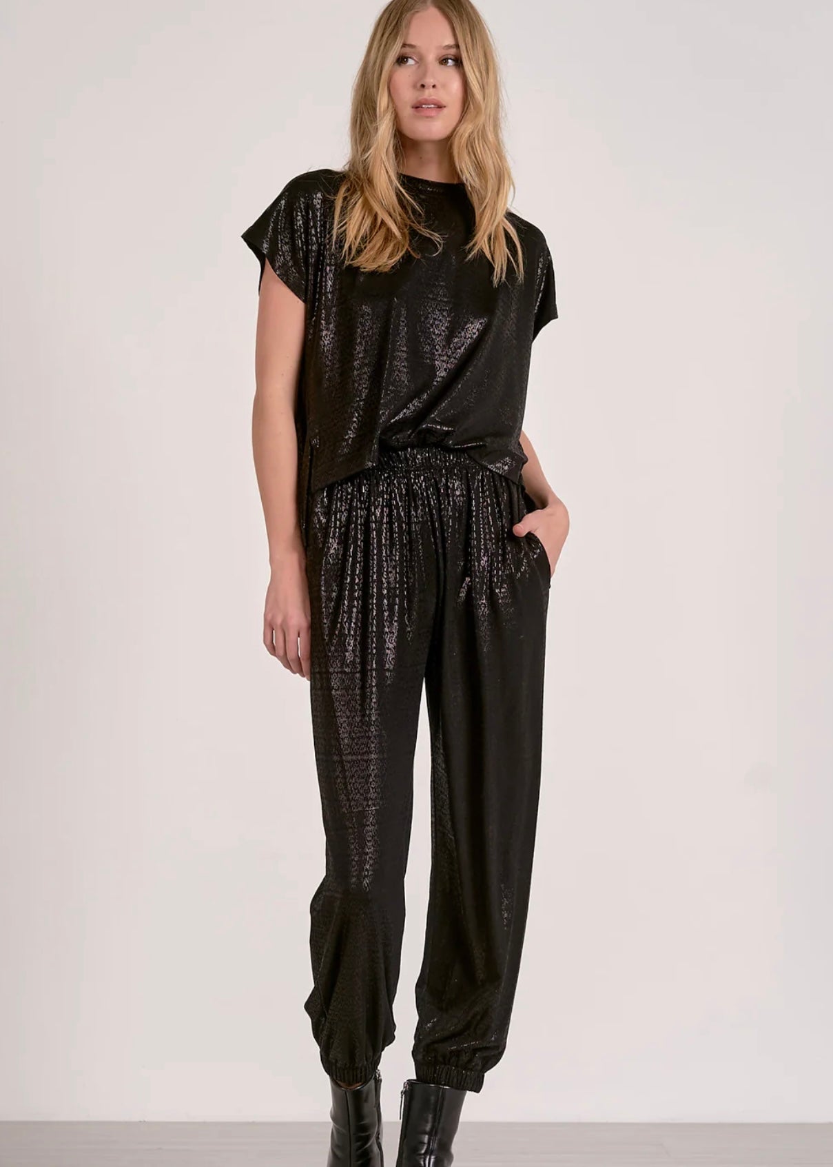 Experience effortless elegance with the Shimmer T-Shirt Jumpsuit by Elan. Perfect for holiday gatherings or everyday wear, this refined piece offers understated luxury with relaxed comfort and subtle sparkle