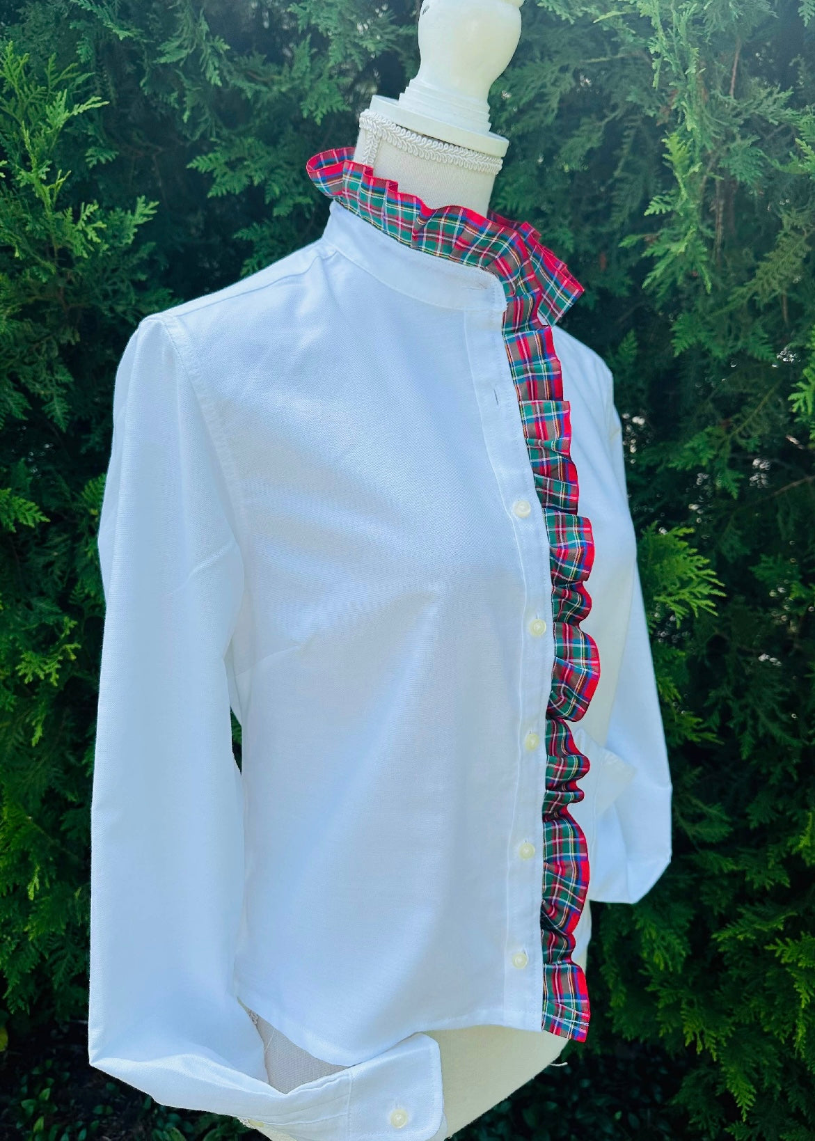 Golden Girl Sophia was the firecracker in the group and definitely the standout! That's why we named this Oxford after her...she will make a lasting impression for sure! We have shortened our classic Oxford and have wrapped ribbon from the collar down the front placket to create a fun and fancy silhouette. She's ready for a party!