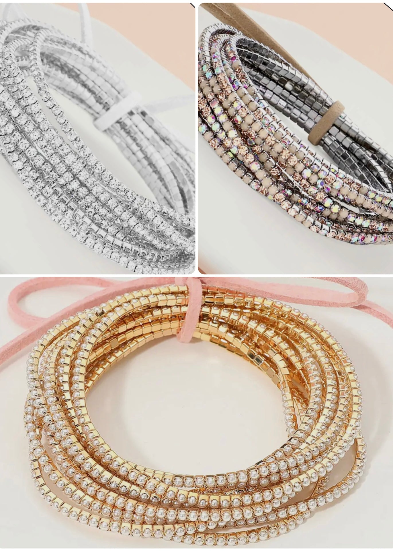 Rhinestone Stretch Bracelets - Pearl