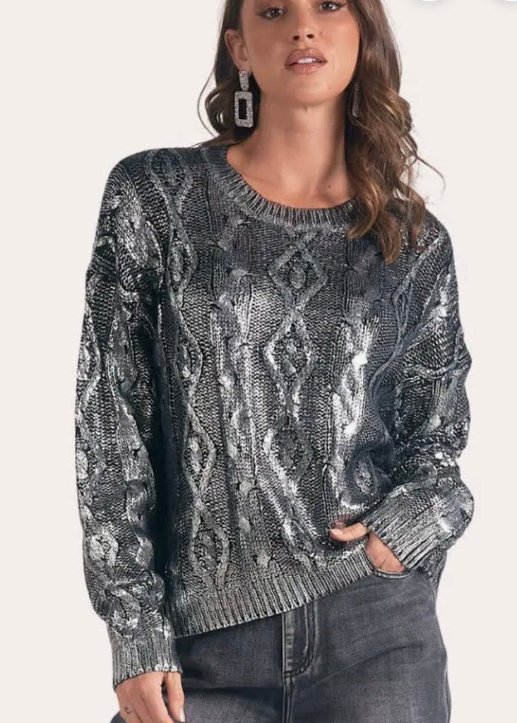 Metallic Cable Sweater