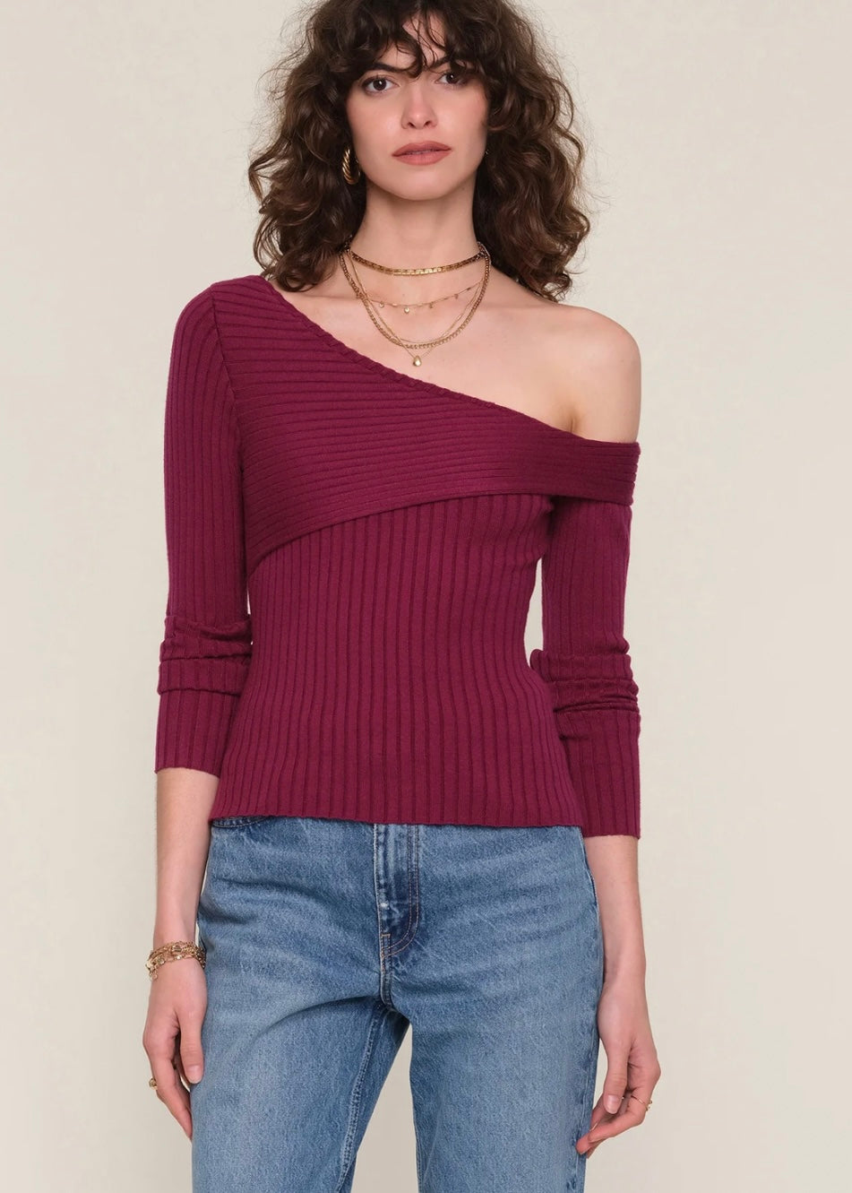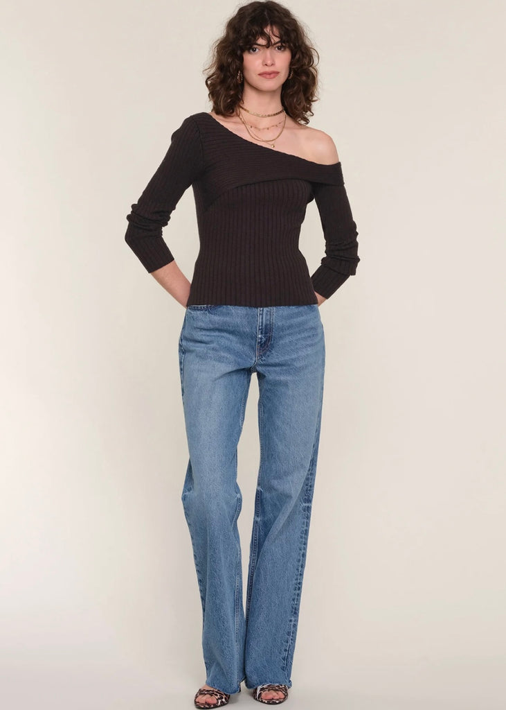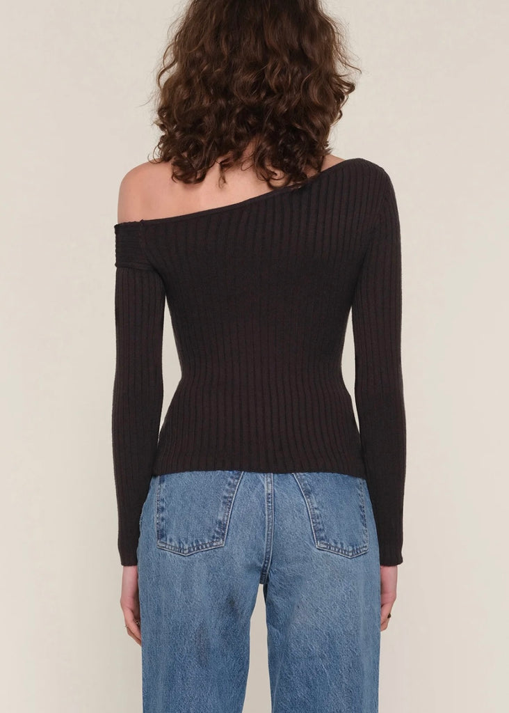 Made from super soft yarn, this top has a ribbed stitch throughout; which create a slim, flattering fit. It features an off the shoulder detail.
