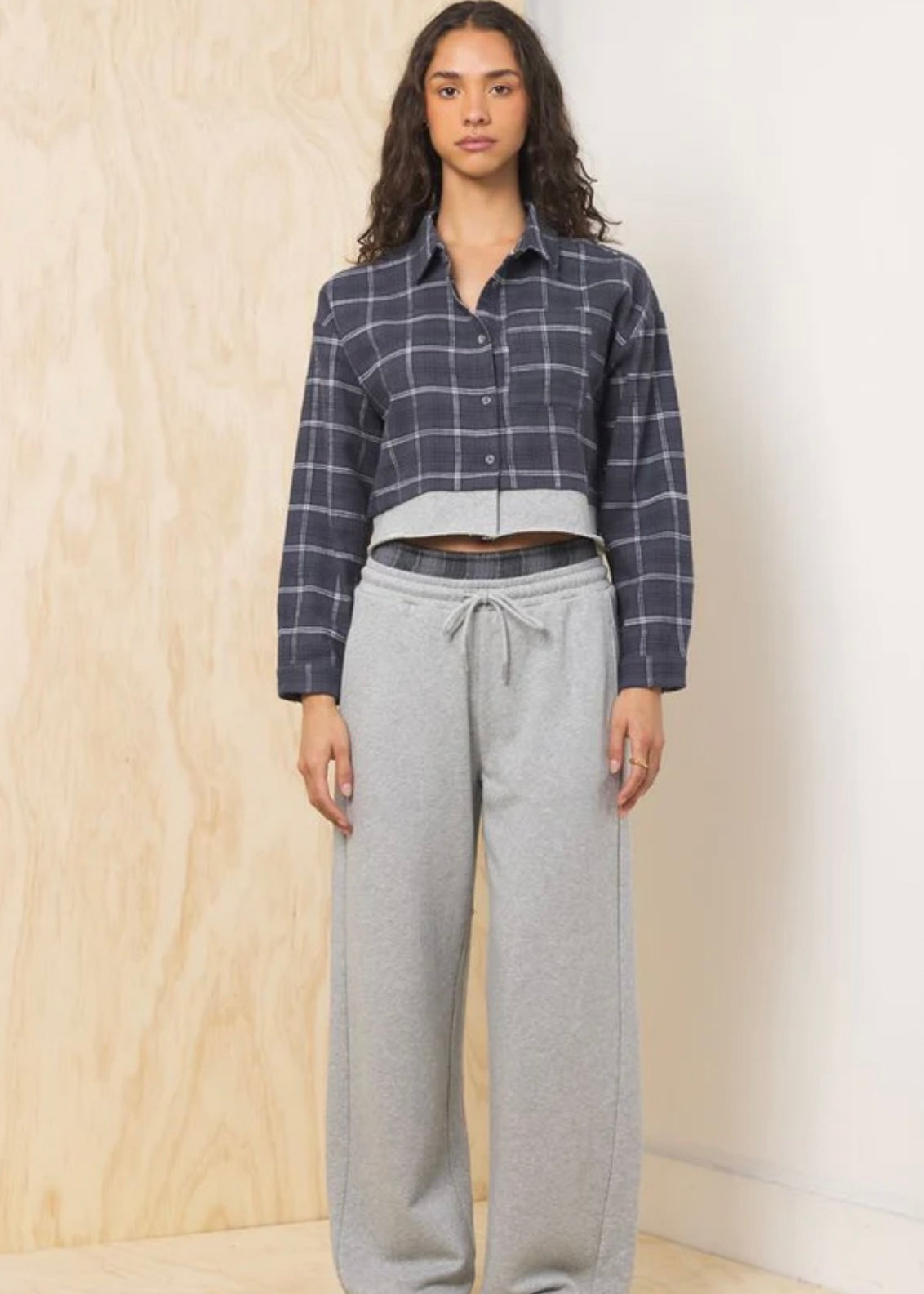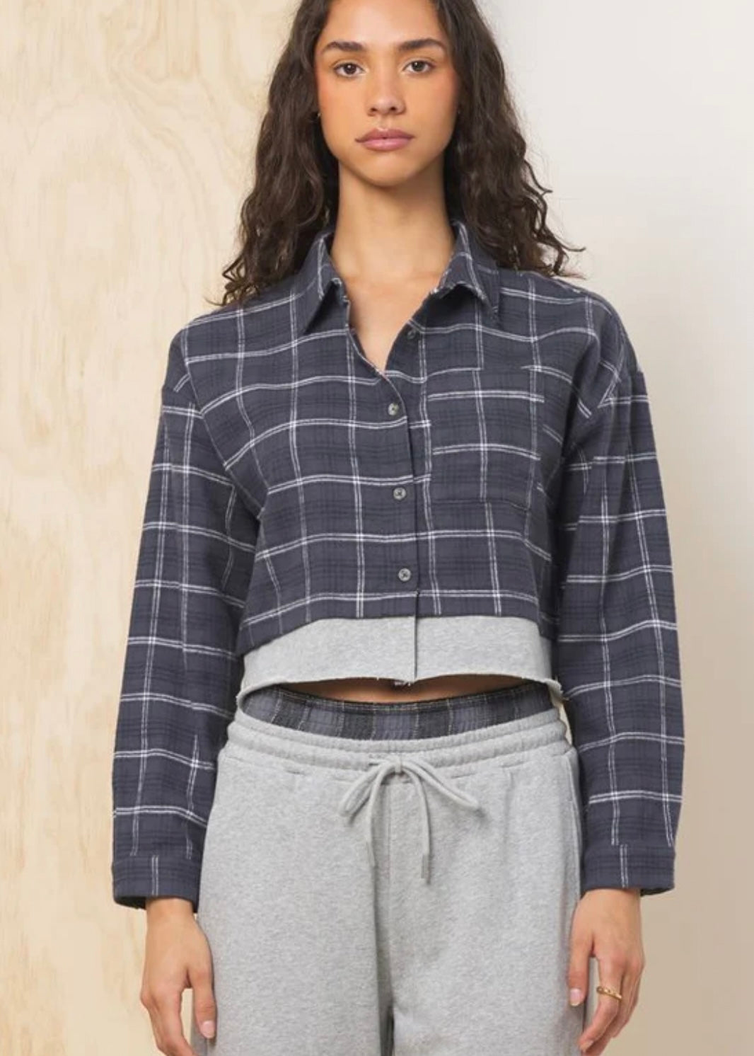 • The Flannel Shirt with French Terry Hem combines classic comfort with modern style. Crafted from soft, breathable flannel, it offers warmth and durability, while the French terry hem adds a unique, casual touch and extra softness around the waist. This versatile shirt is perfect for layering or wearing on its own, providing both comfort and a refined look suitable for everyday wear or relaxed outings.