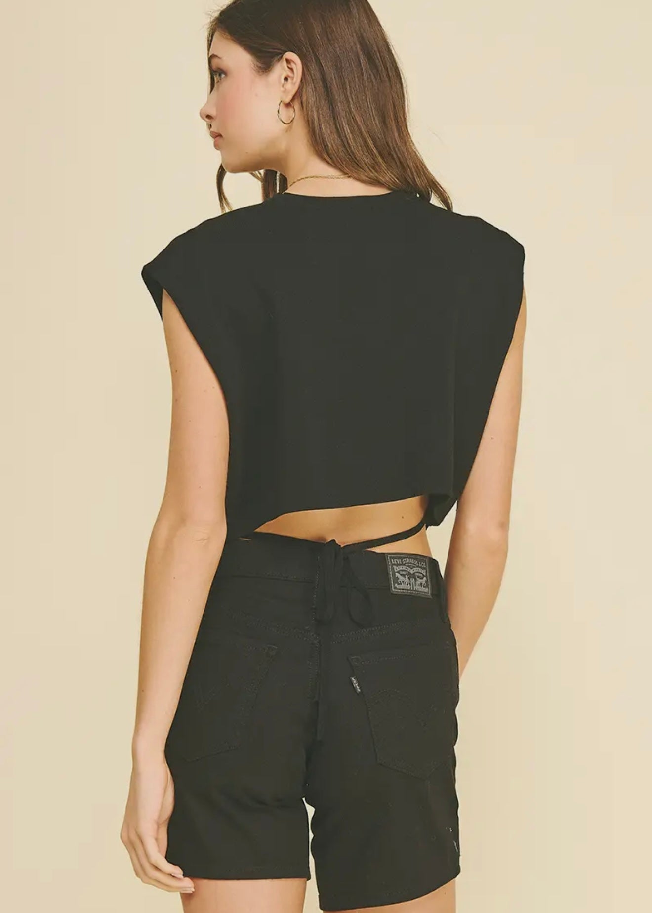 The Jax Knit features a round neck and cap sleeves, enhancing breathability and comfort. The tie detail at the back adds a versatile design element, allowing for adjustable fit and style.