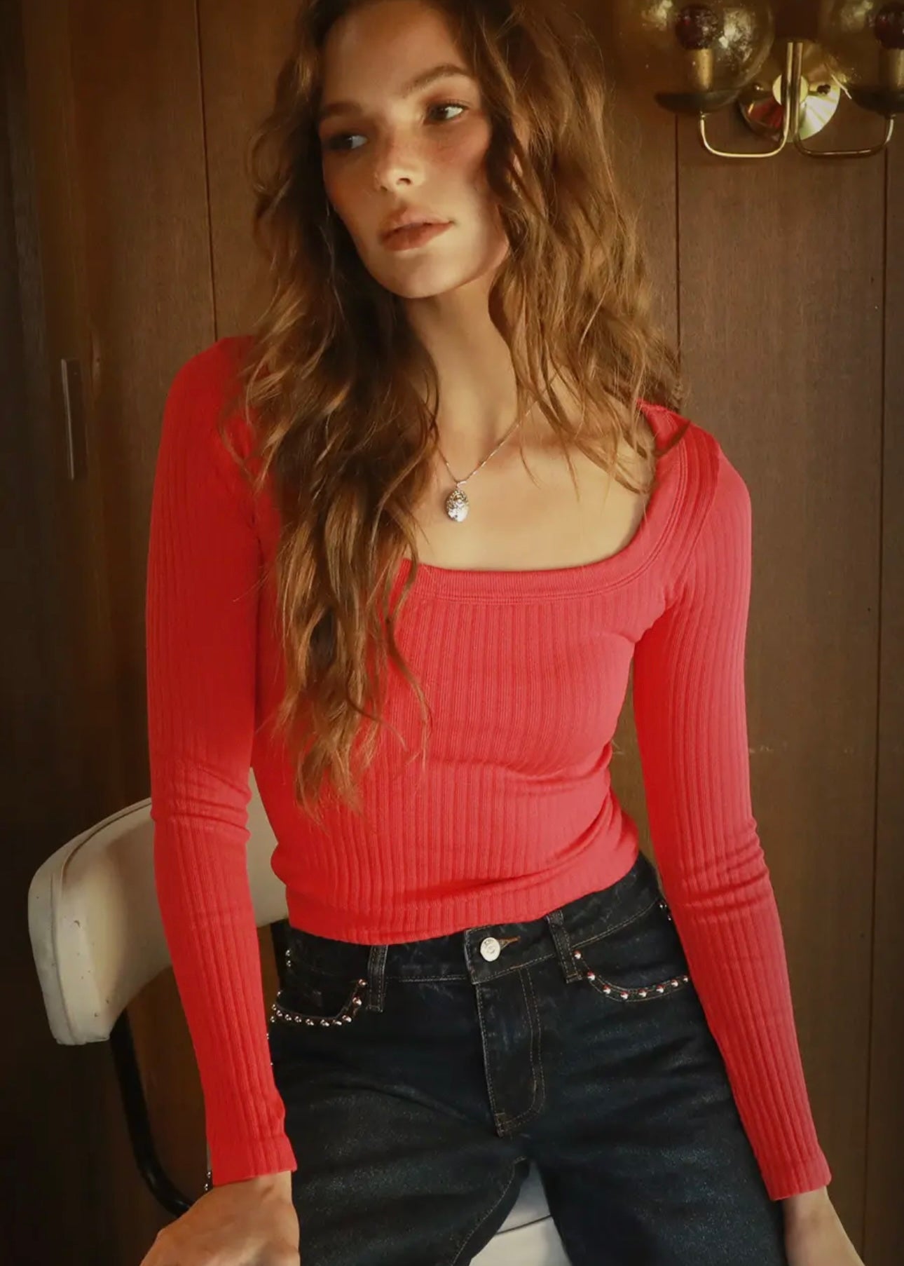 The Niki Square Neck is your new go-to for effortless style. This ribbed long sleeve top features a chic square neckline that frames the shoulders beautifully, while the soft, form-flattering fabric moves with you all day. The subtle ribbed texture adds visual interest without the fuss. One size fits most, because great style shouldn't be complicated.