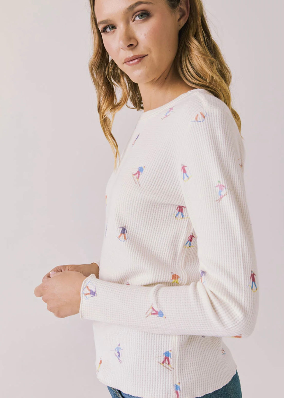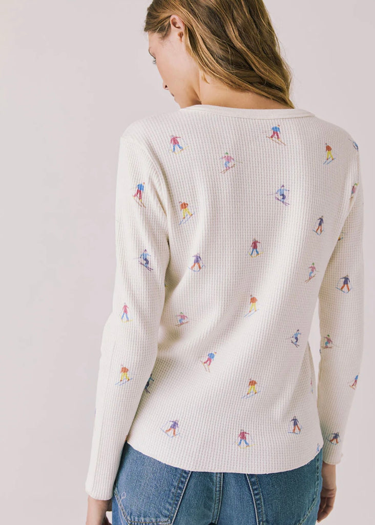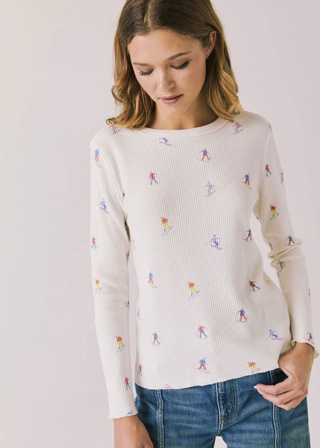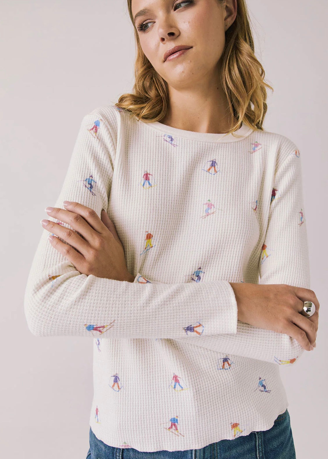 • The Allover Skiers Long Sleeve is crafted from a soft white fabric for effortless everyday comfort. Featuring a playful petite skier motif, this piece brings a touch of unexpected whimsy. It’s simple yet fun design makes it a memorable addition to any wardrobe.