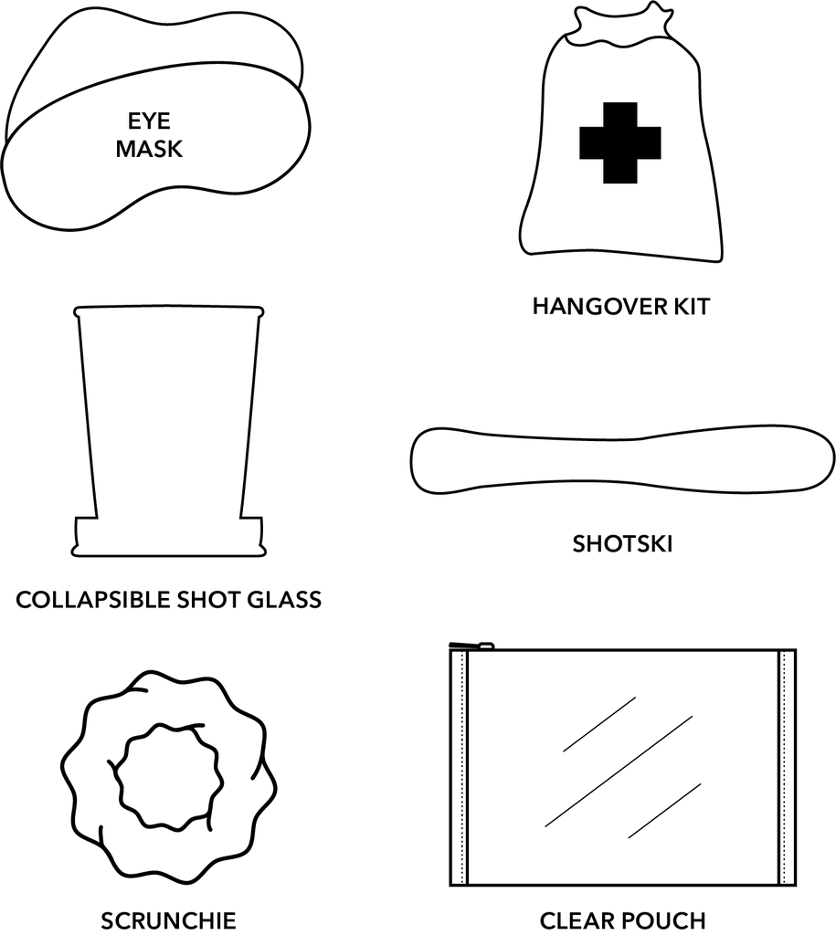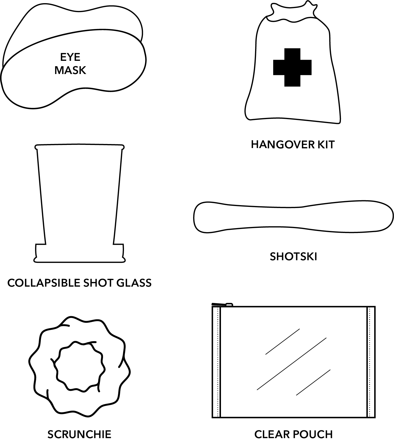 Aprés all day with the Aprés Ski Set by Pinch Provisions. Whether you're actually hitting the slopes, or just feeling the mountain vibes, this 6-piece set is the perfect collection of chalet-chic essentials, packed in a clear flat pouch with silver vegan leather trim. Keep the party going with a personal 8-in. shot-ski with collapsible stainless steel shot glass. Then snuggle up with an ivory sherpa sleep mask and scrunchie. And finally, keep the mini hangover kit with pain reliever, electrolytes, facial cleaning towelette, and breath drops close-by the next morning.
