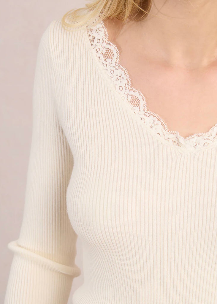 The Camille Knit is your new go-to for cozy style with a playful twist. Featuring a soft ribbed knit fabric, long sleeves, and a flattering V-neckline, it’s designed to keep you comfy and chic. The delicate lace band adds a flirty touch that makes this top perfect for day or night adventures.
