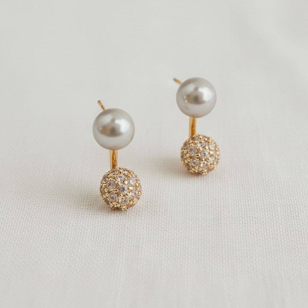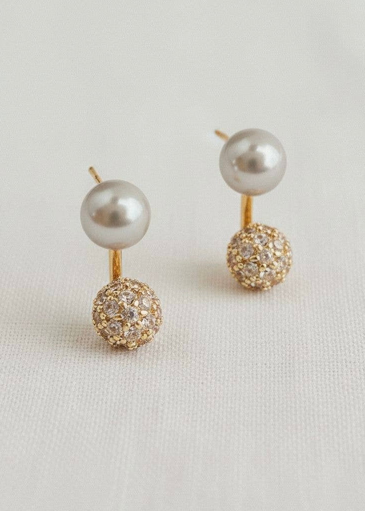 Featuring a lustrous glass pearl and sparkling cubic zirconia, these earrings offer two styles in one. Wear as classic studs for a minimalist touch, or add the elegant pearl drop for a sophisticated statement