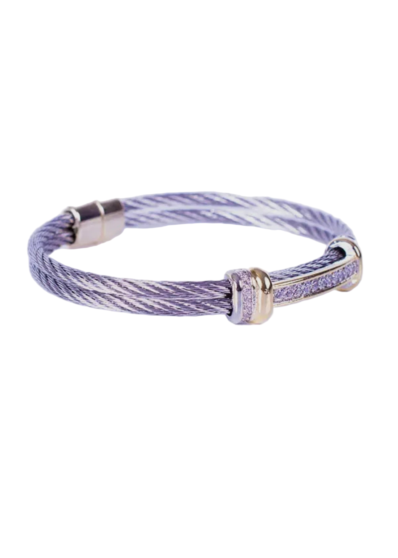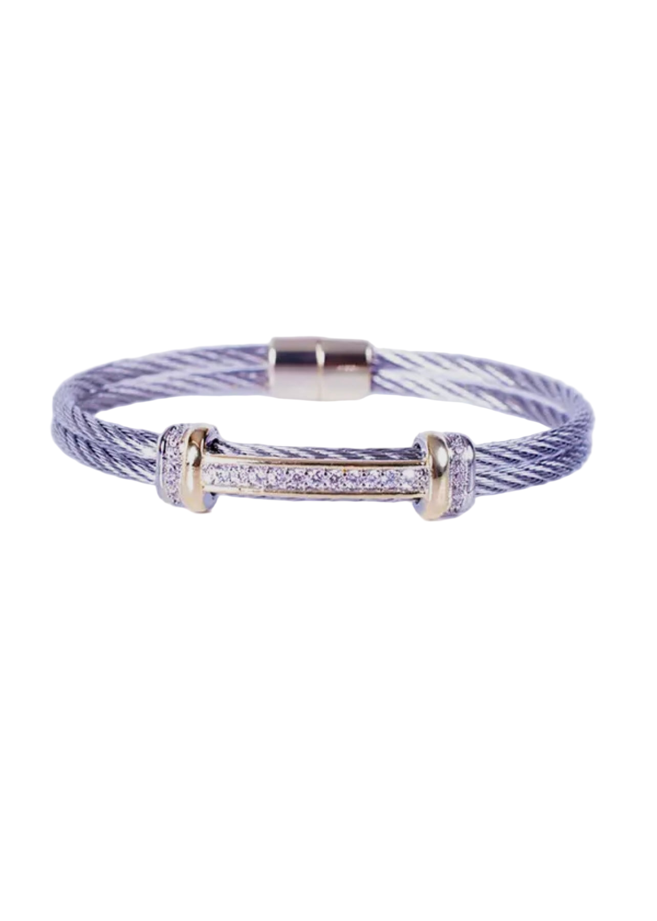 Featuring a beautiful double cable design and a pave crystal station, this bracelet exudes elegance and sophistication