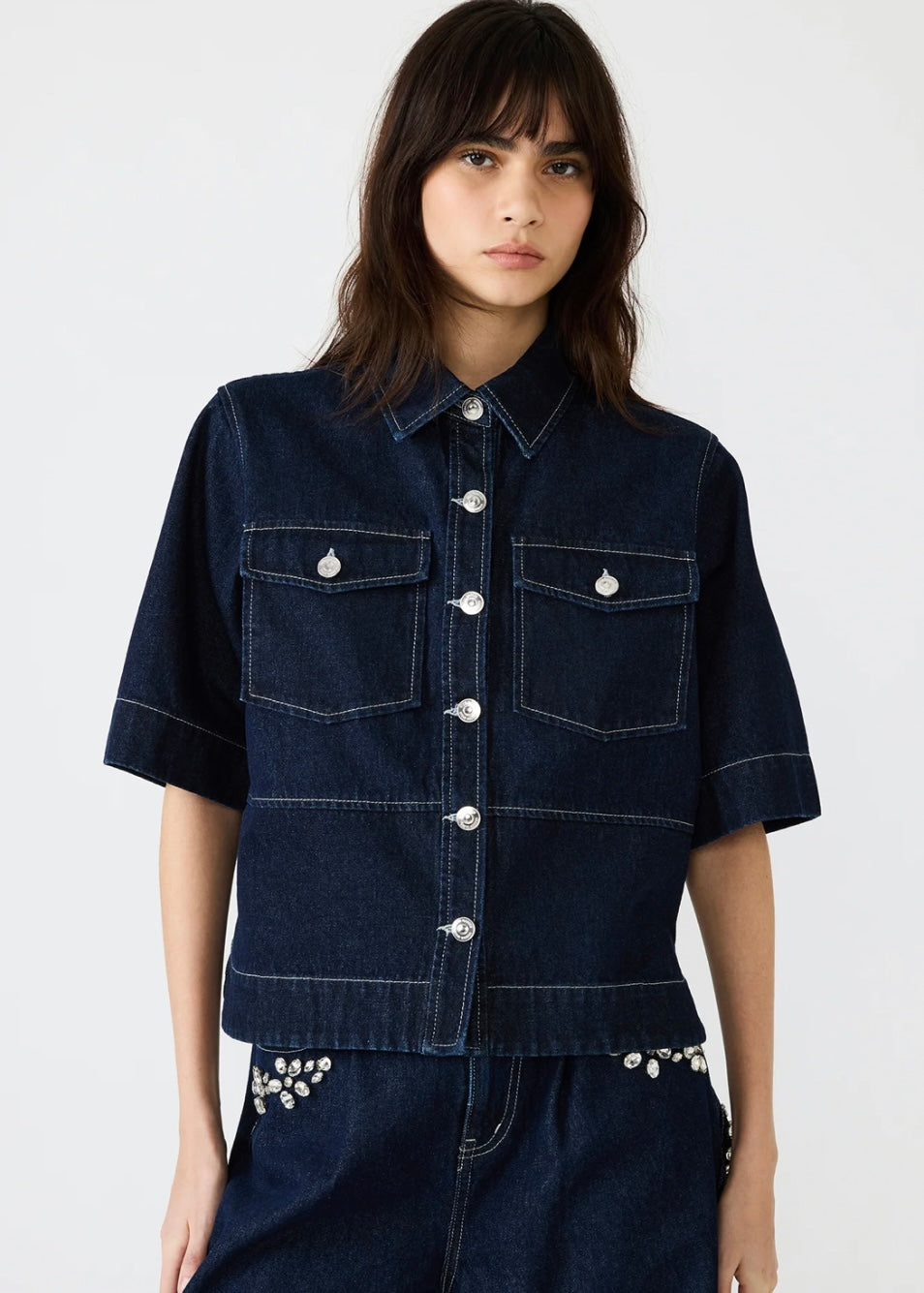 Crisp denim meets effortless style with the Eliana Top. This classic button-up delivers that perfect blend of casual cool and put-together polish—throw it on over a tee or wear it solo for instant wardrobe magic.