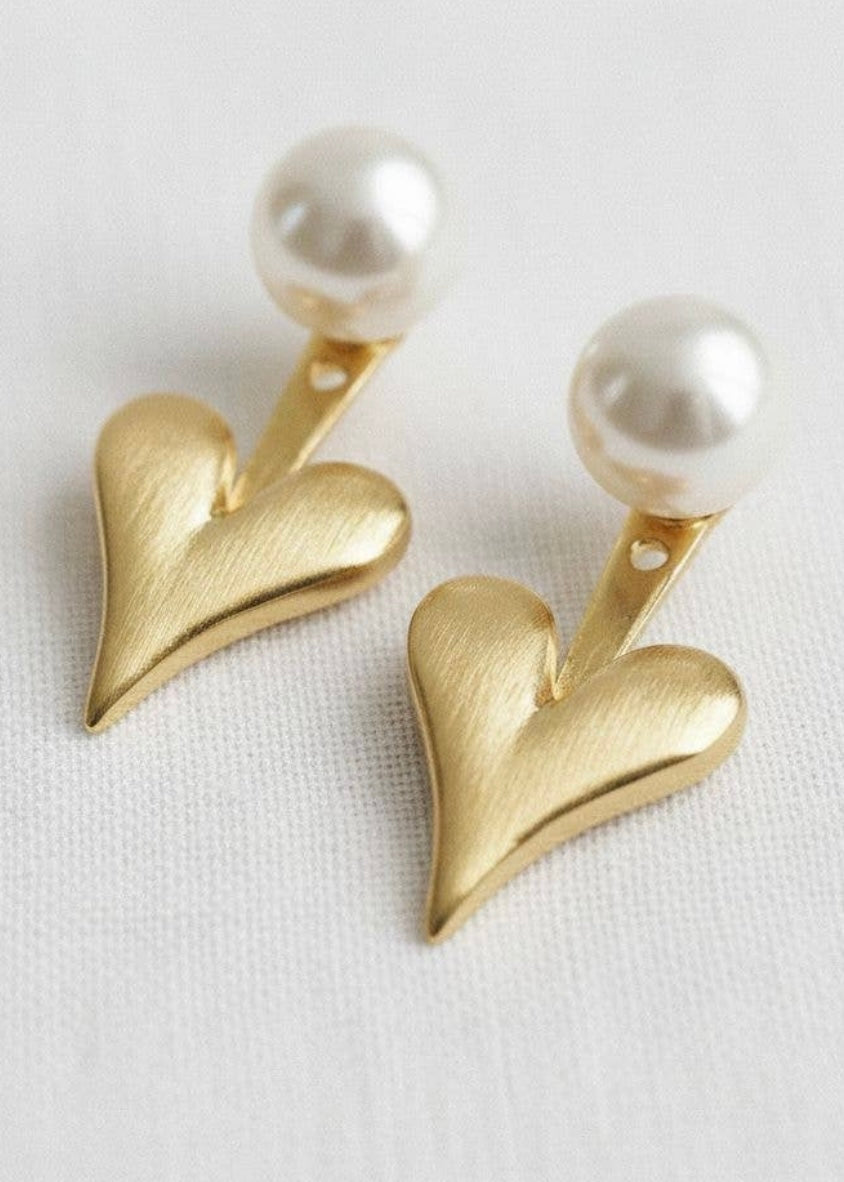 Elevate your style with these charming heart-shaped pearl drop earrings, perfect for any occasion.