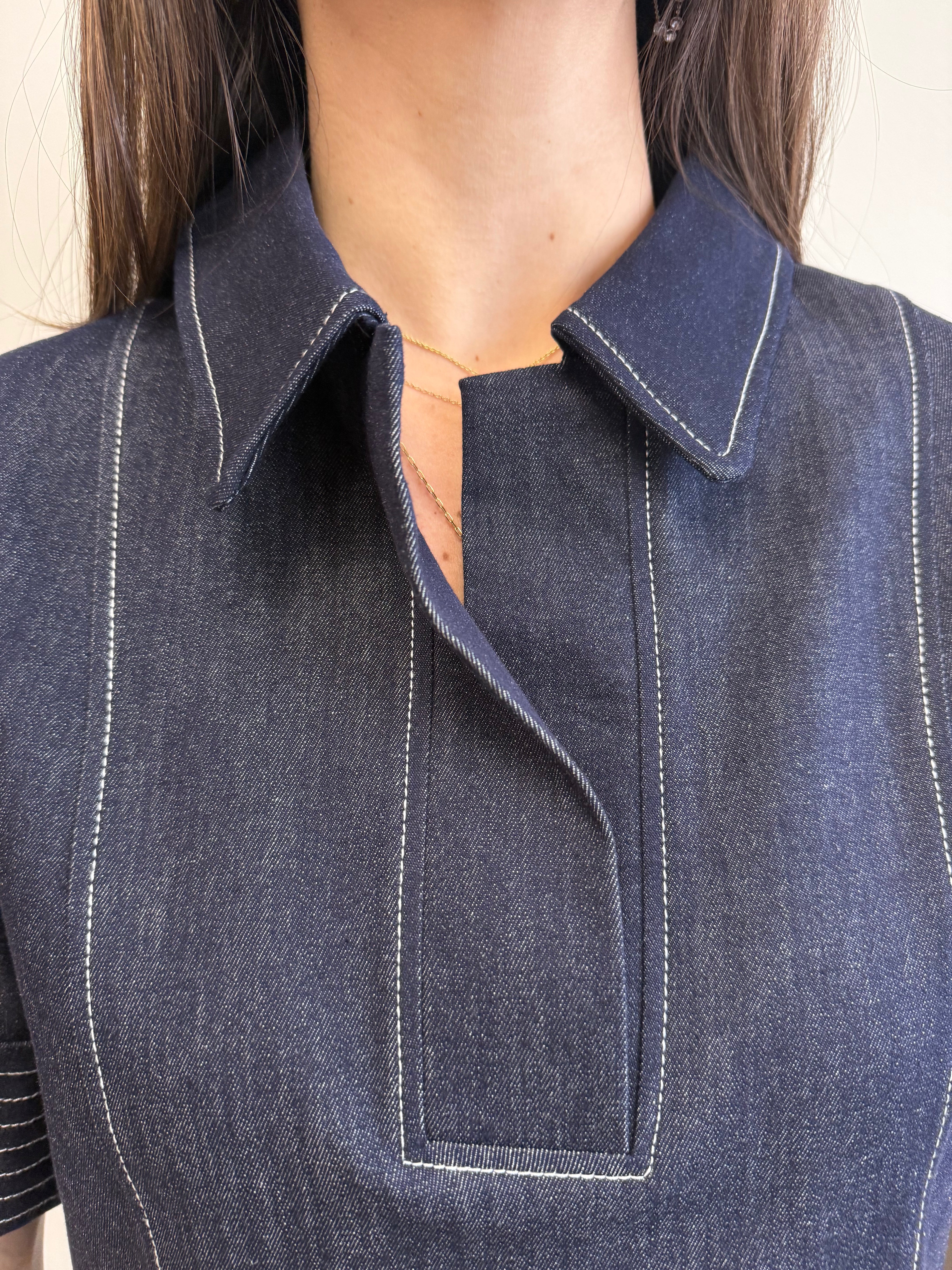 • With its breezy short sleeves and chic V-neckline, this denim stunner strikes the perfect balance between laid-back and polished