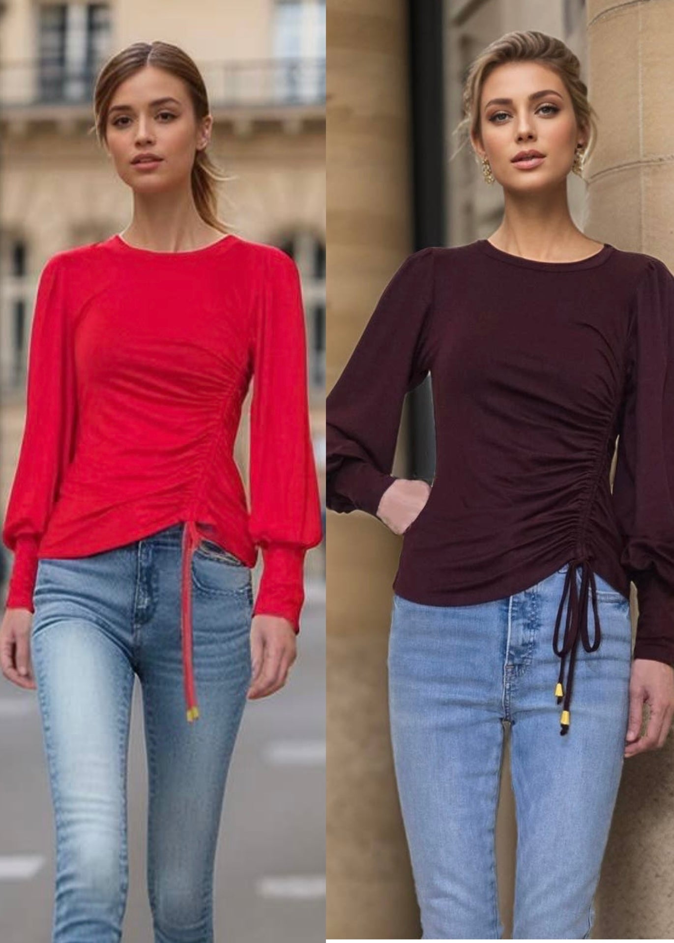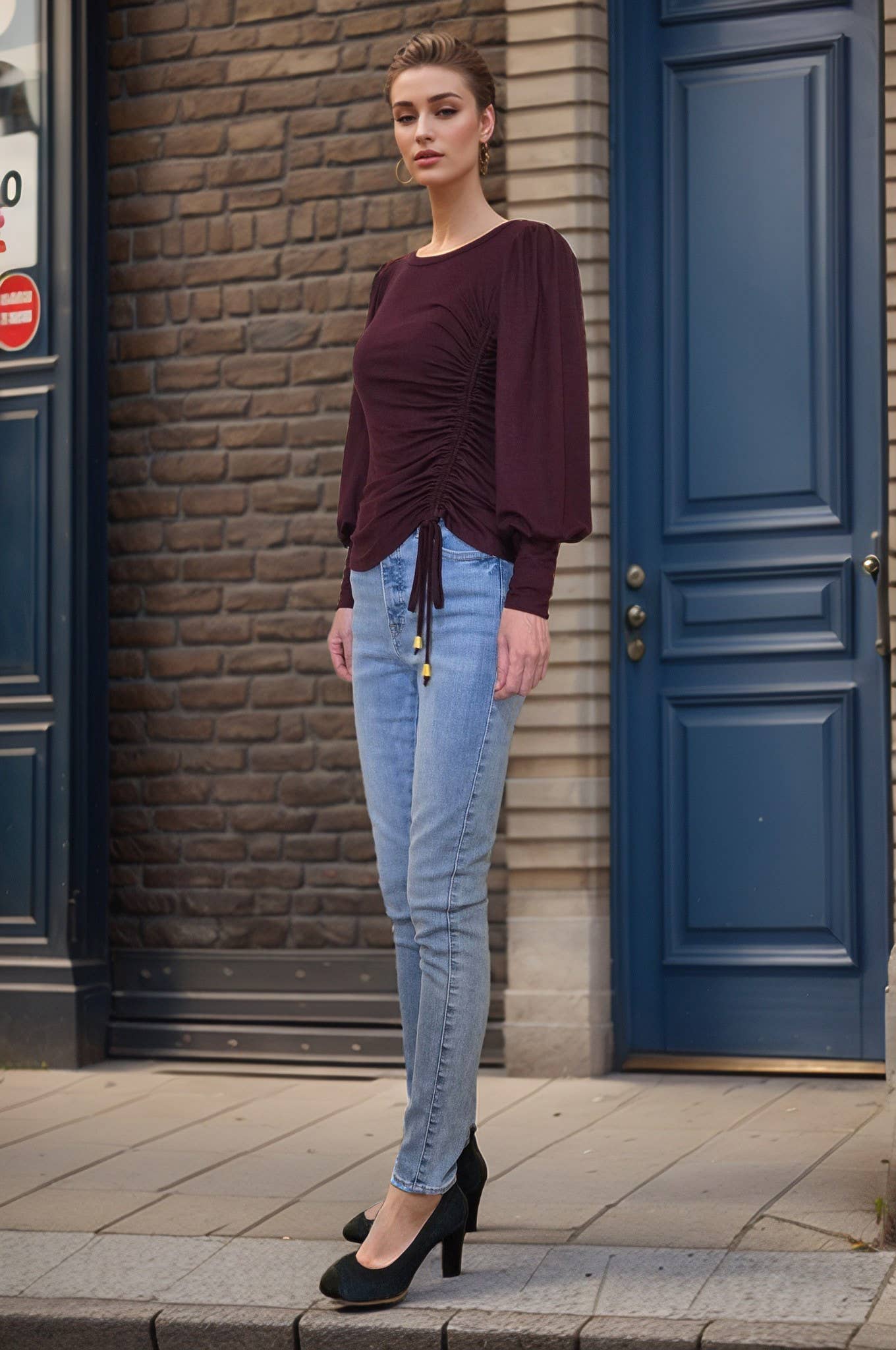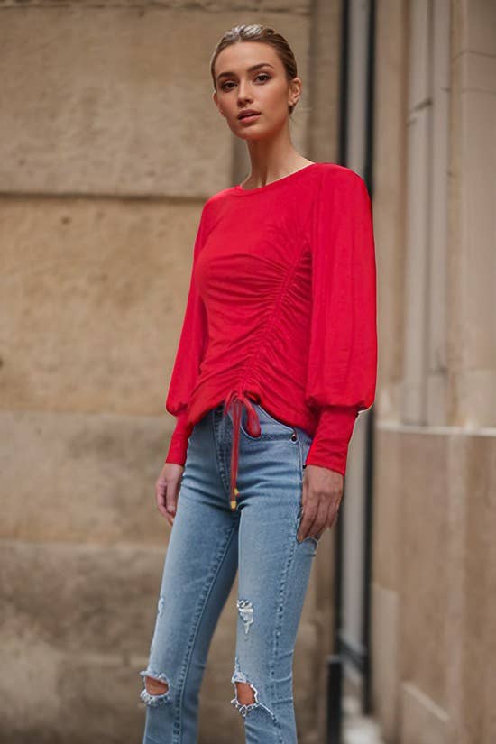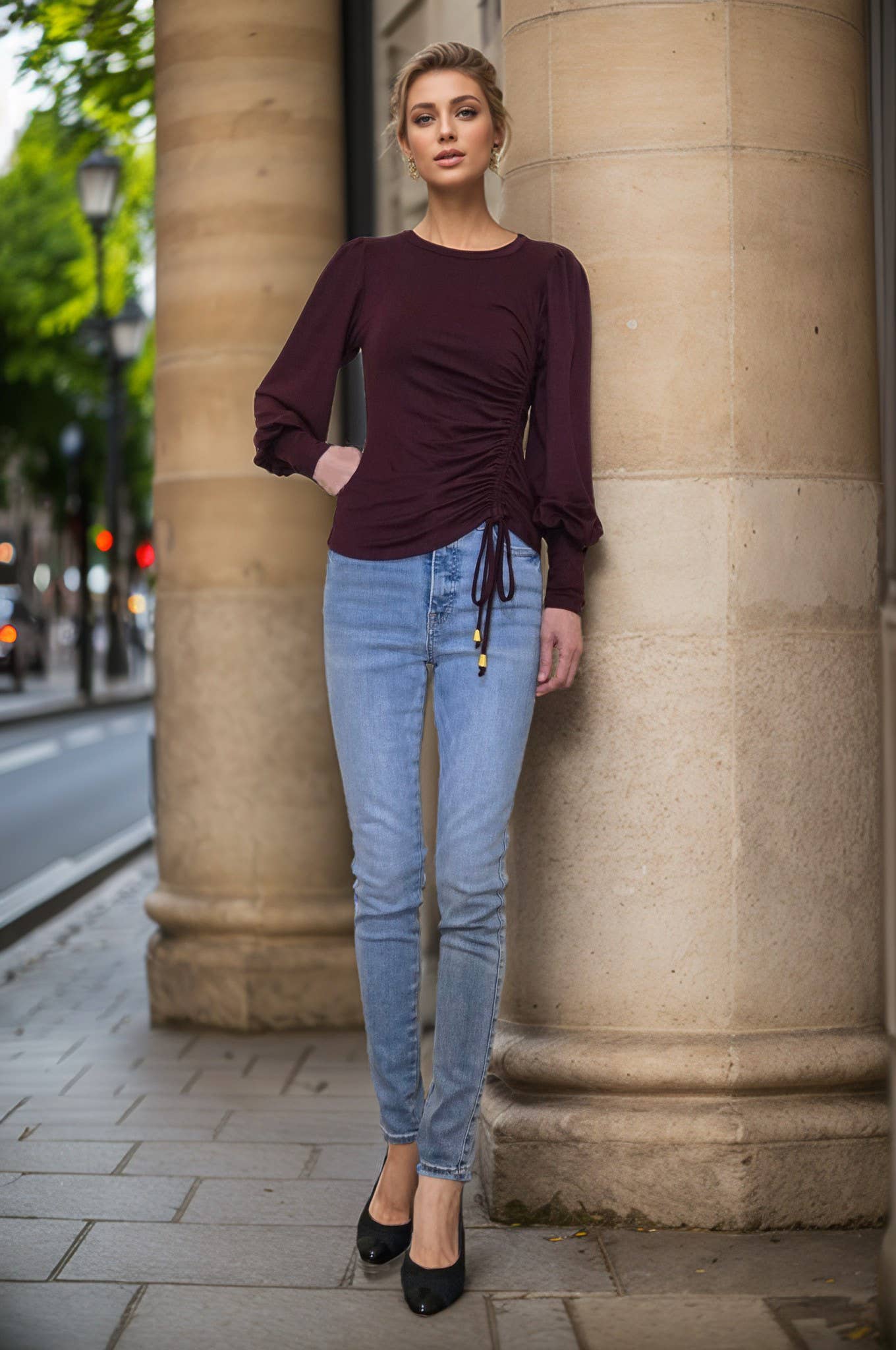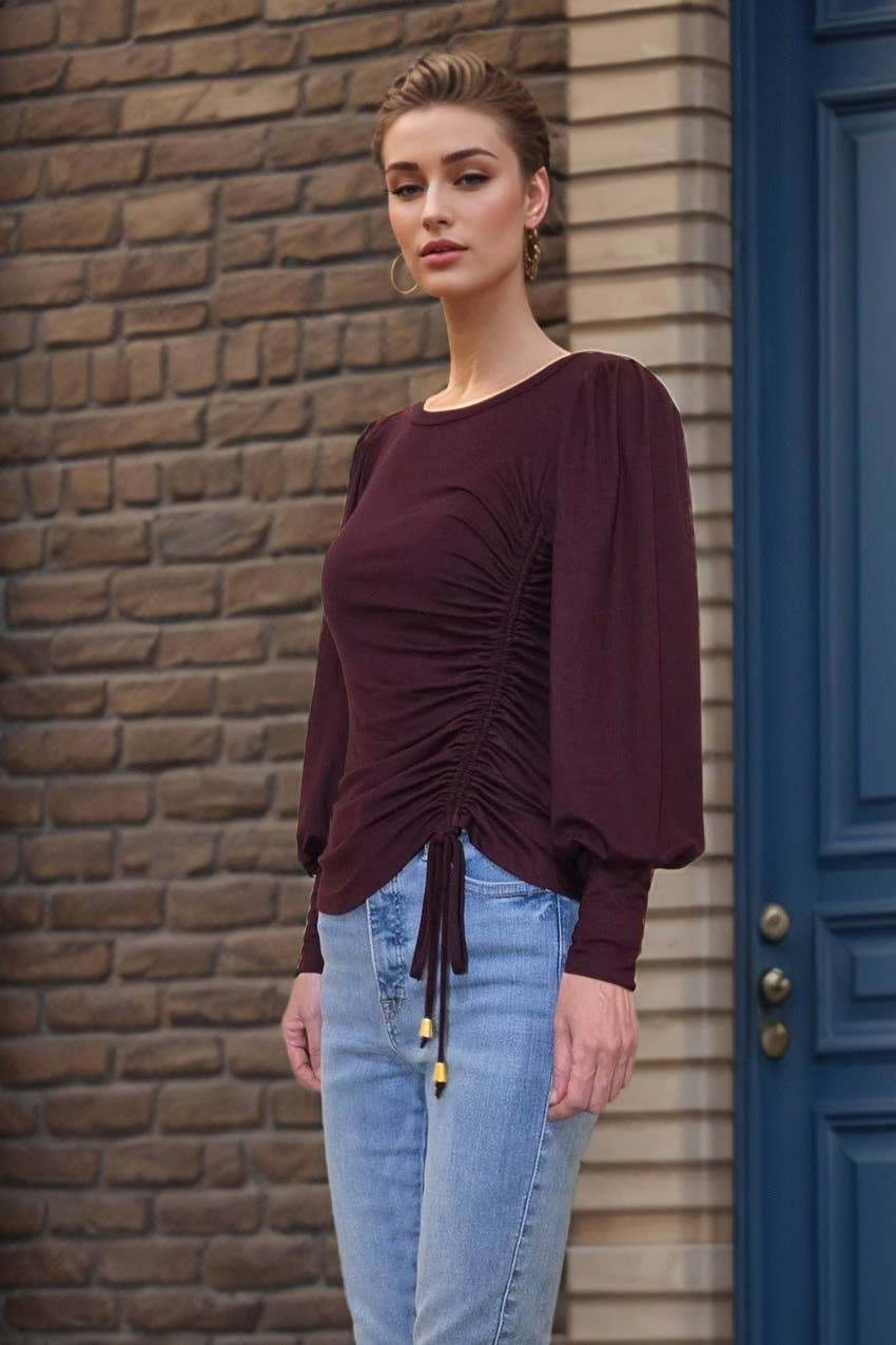 Expertly crafted in the USA, the Jenny Cinch Blouse features a unique side drawing string for a custom and flattering fit