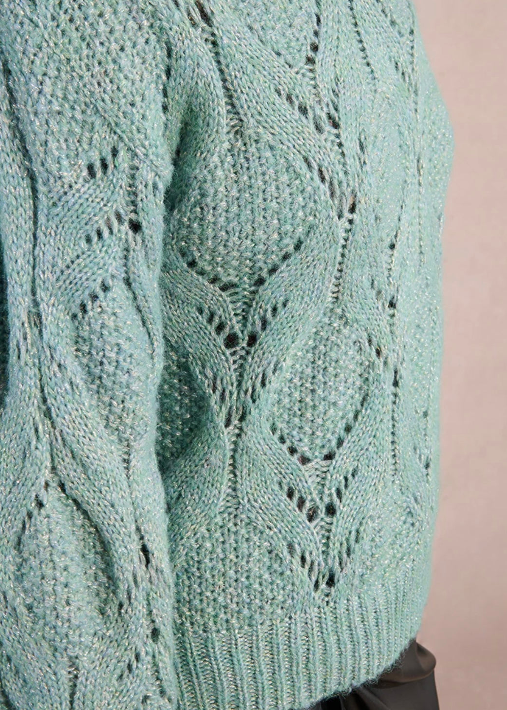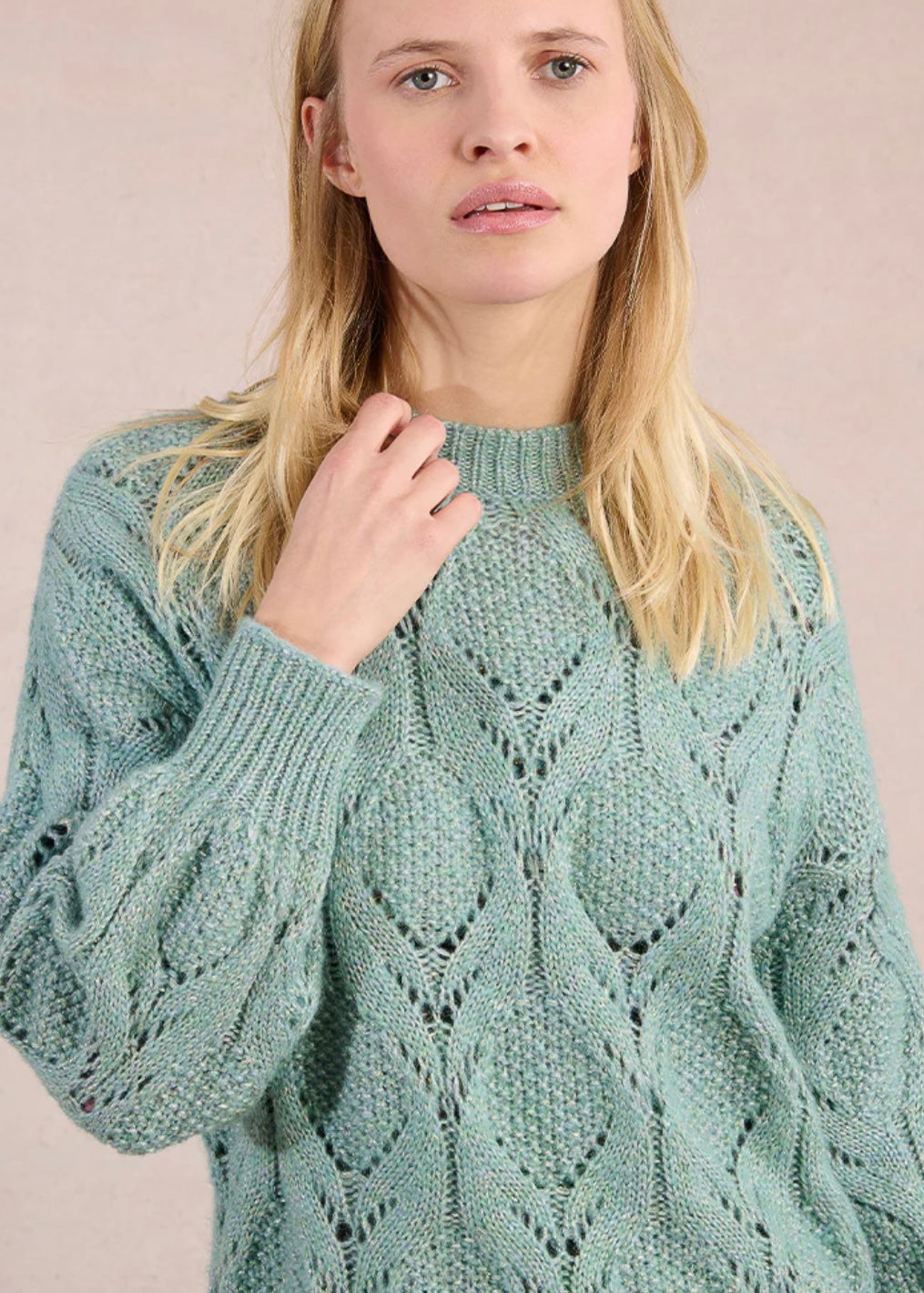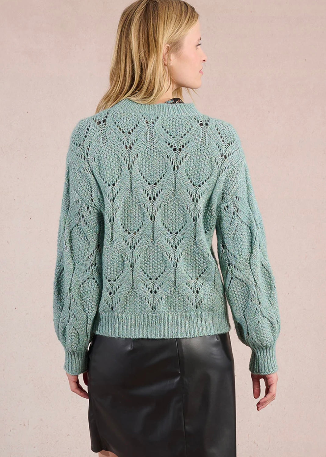 The Maddison Sweater brings charm and comfort with its playful openwork knit pattern and softly ballooned long sleeves. Its round neckline frames your look perfectly, making it an easy favorite for layering or wearing on its own with a touch of whimsy.