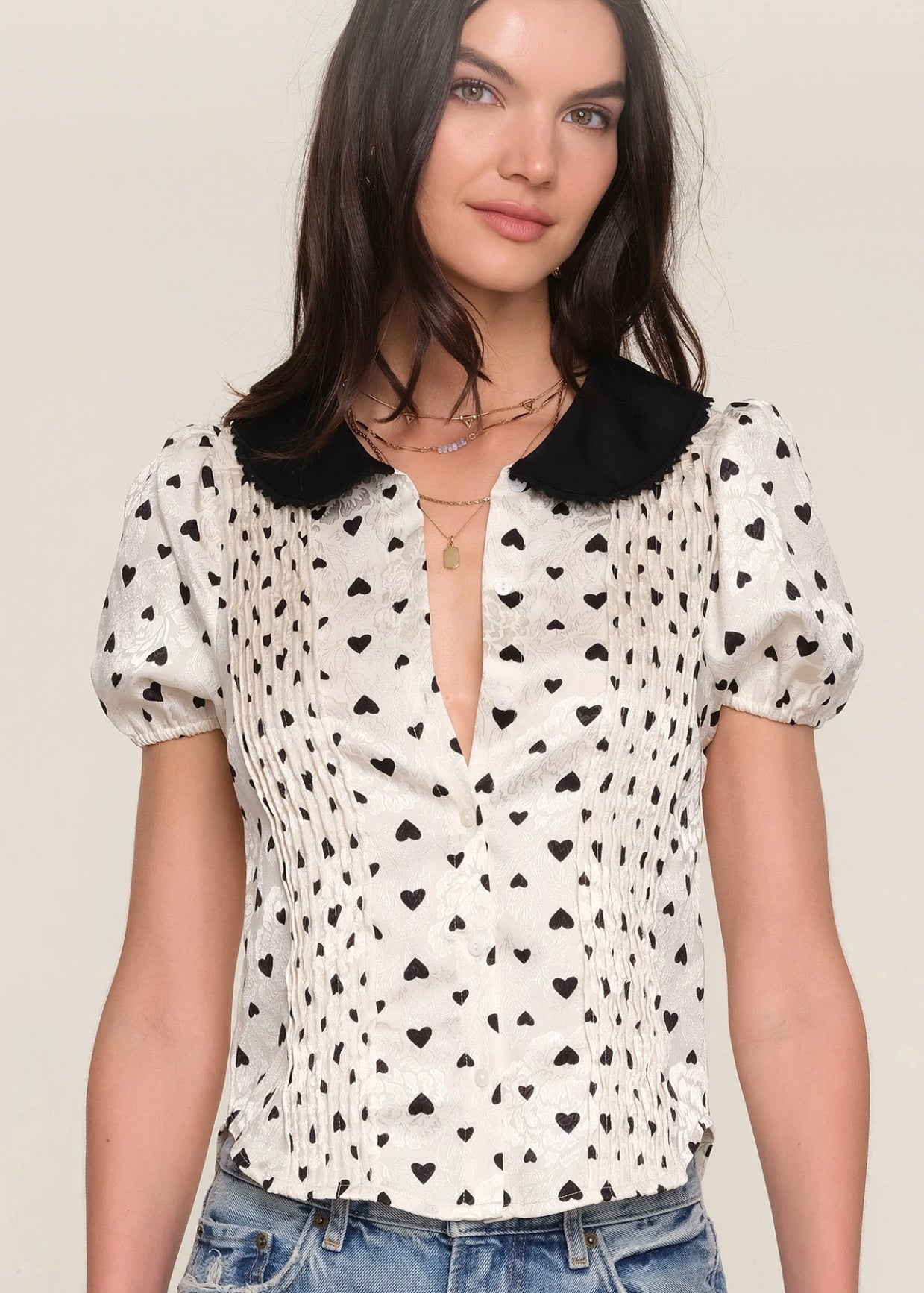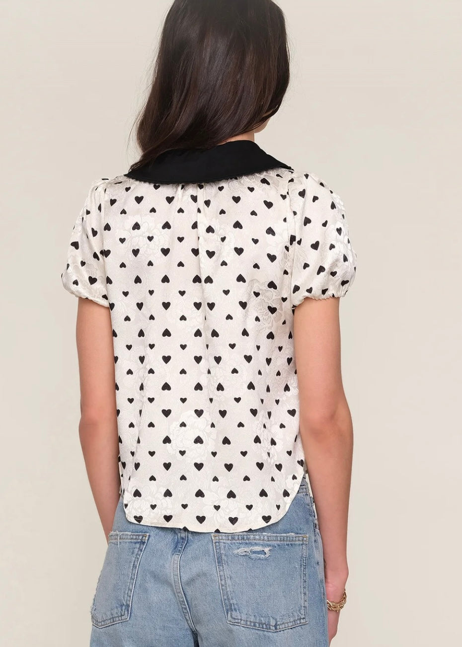 The Mindi Top is made from a lux, heart printed, crepe de chine
