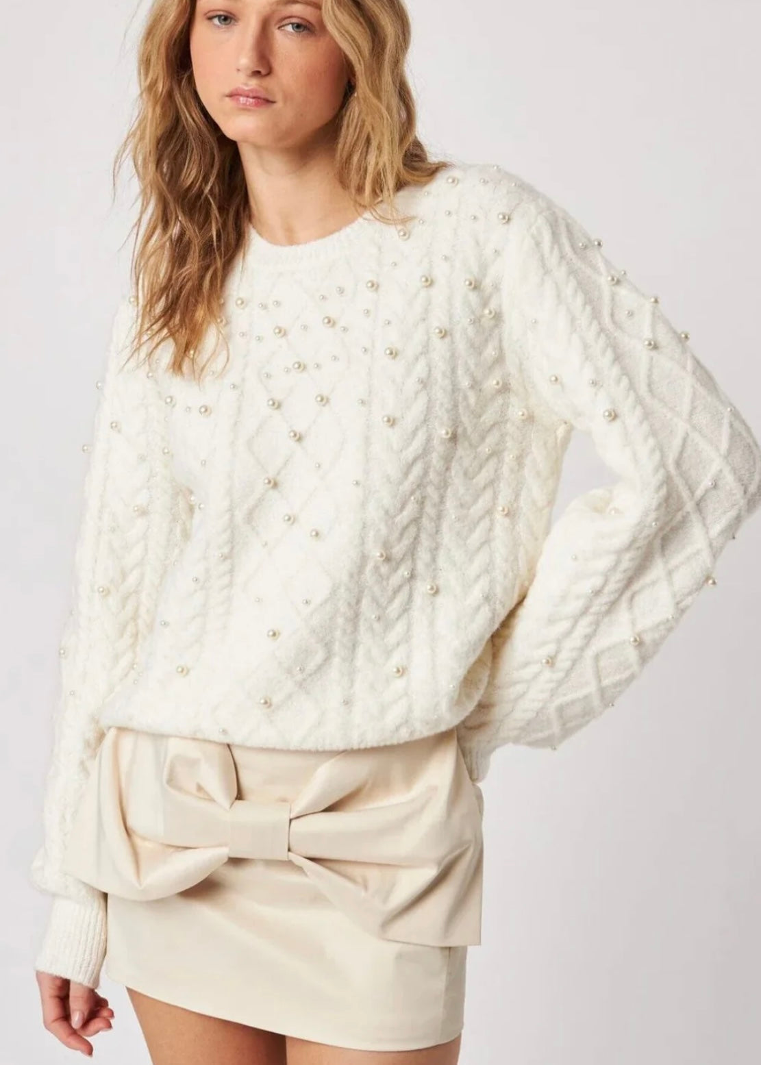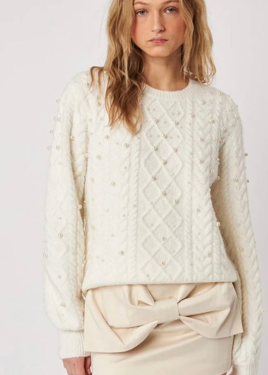 Our Pearly Cable Sweater is a timeless cable knit with a feminine refresh