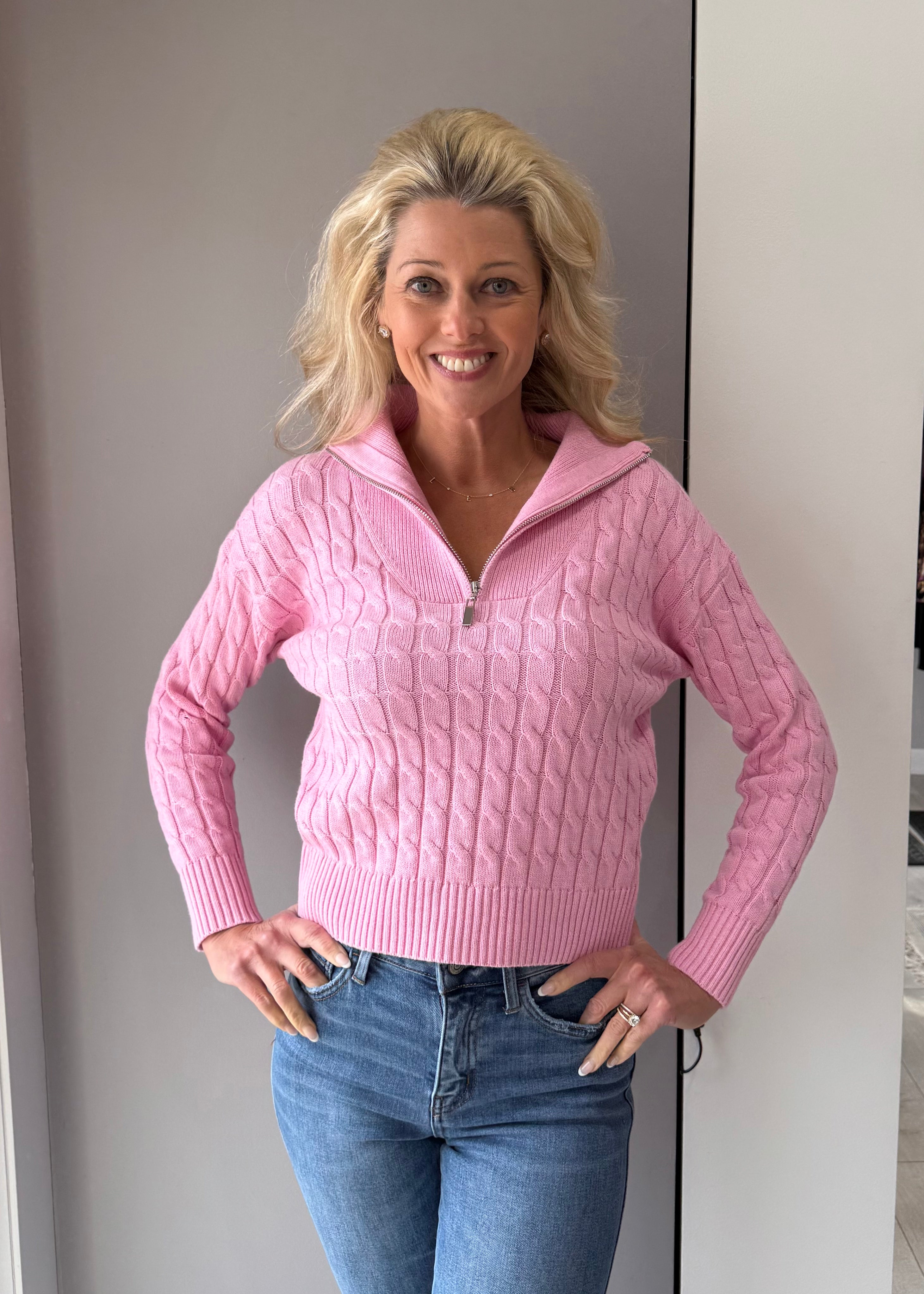Poppy Cable Knit Sweater - XS / Bubblegum is backordered and will ship as soon as it is back in stock.