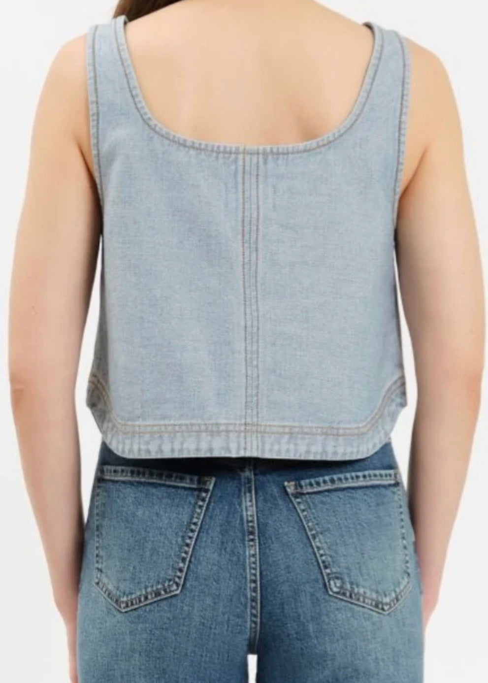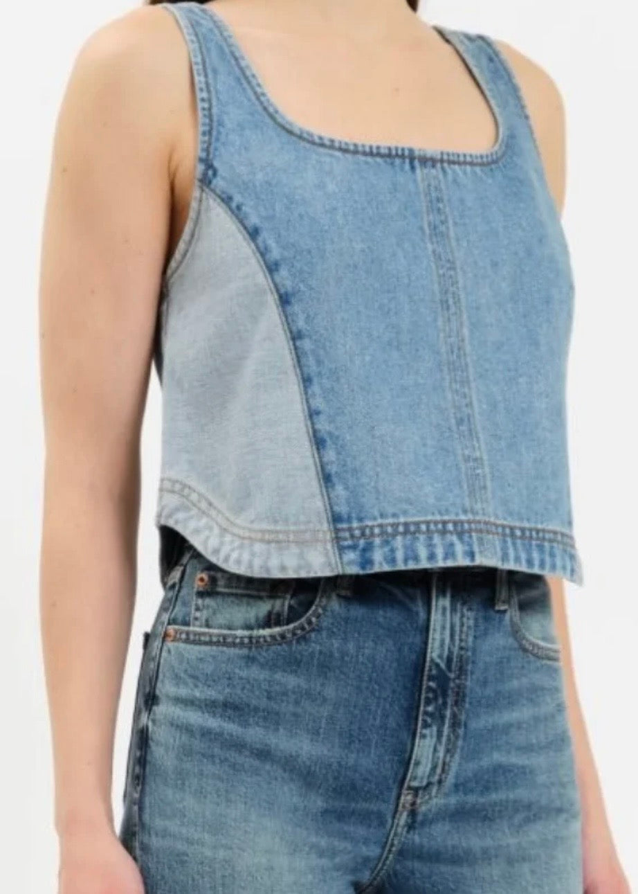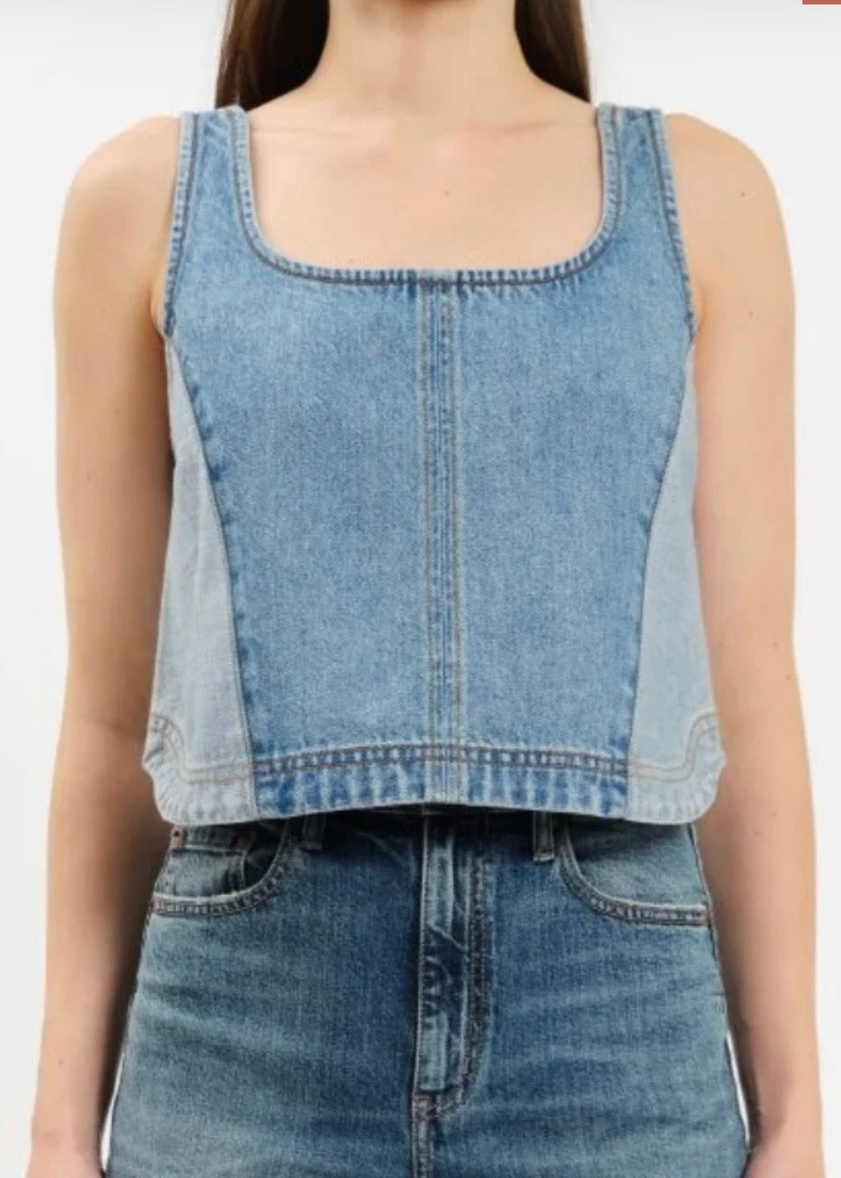 The Solana Denim Tank Top is crafted from 100% cotton denim, providing breathability and comfort
