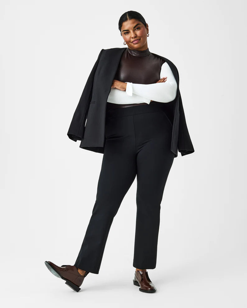 Designed with smoothing premium ponte fabric, this totally machine-washable Kick Flare pant features a comfortable pull-on design and offers a sleek look.battle number 20386R