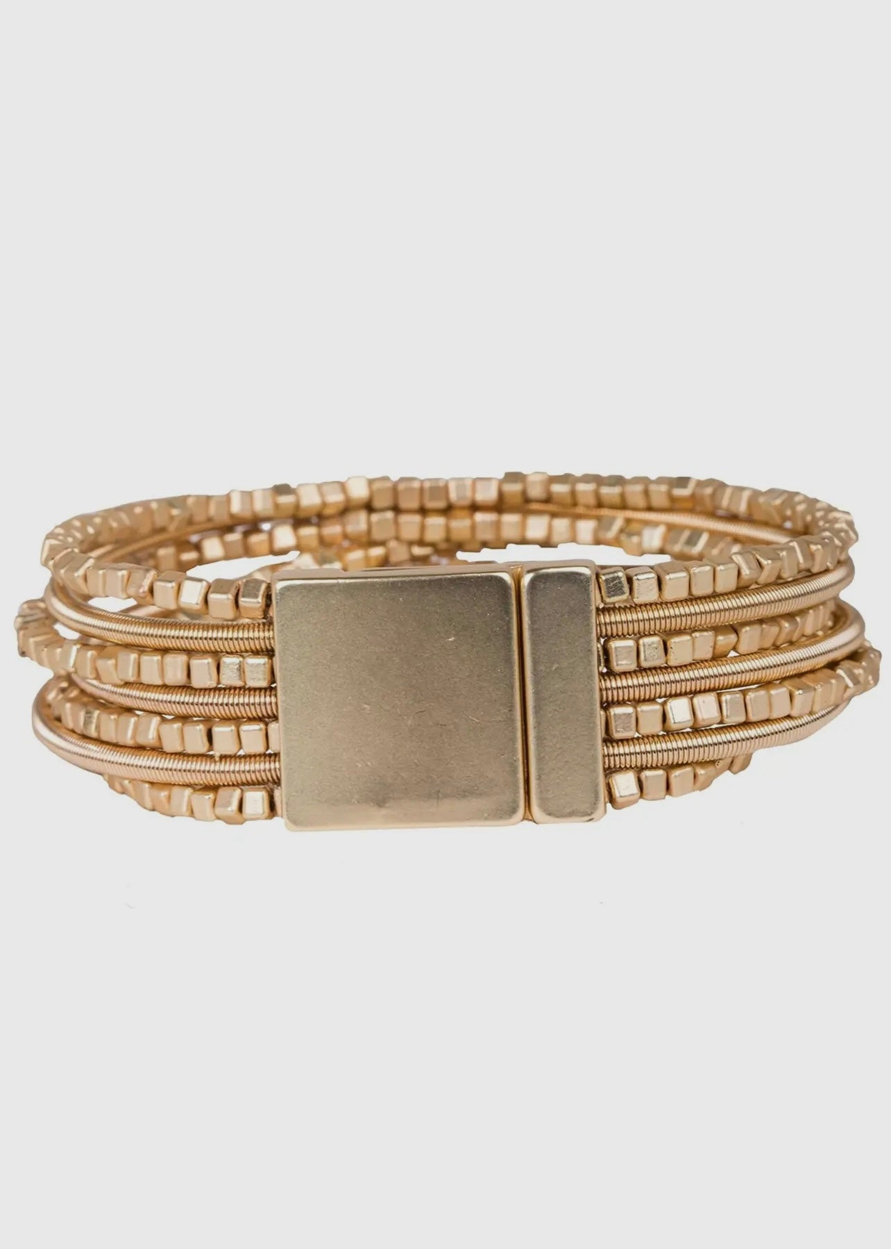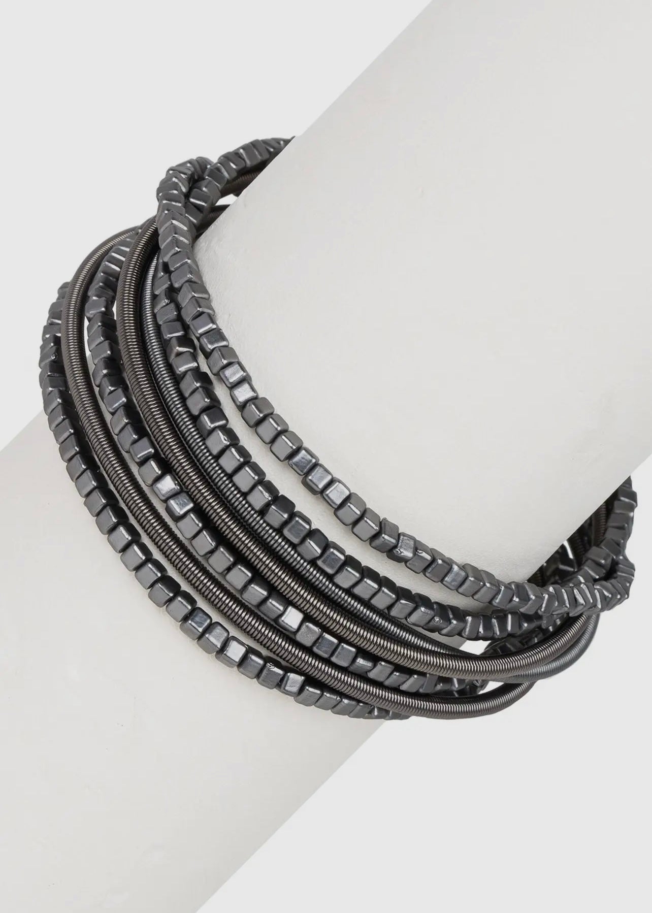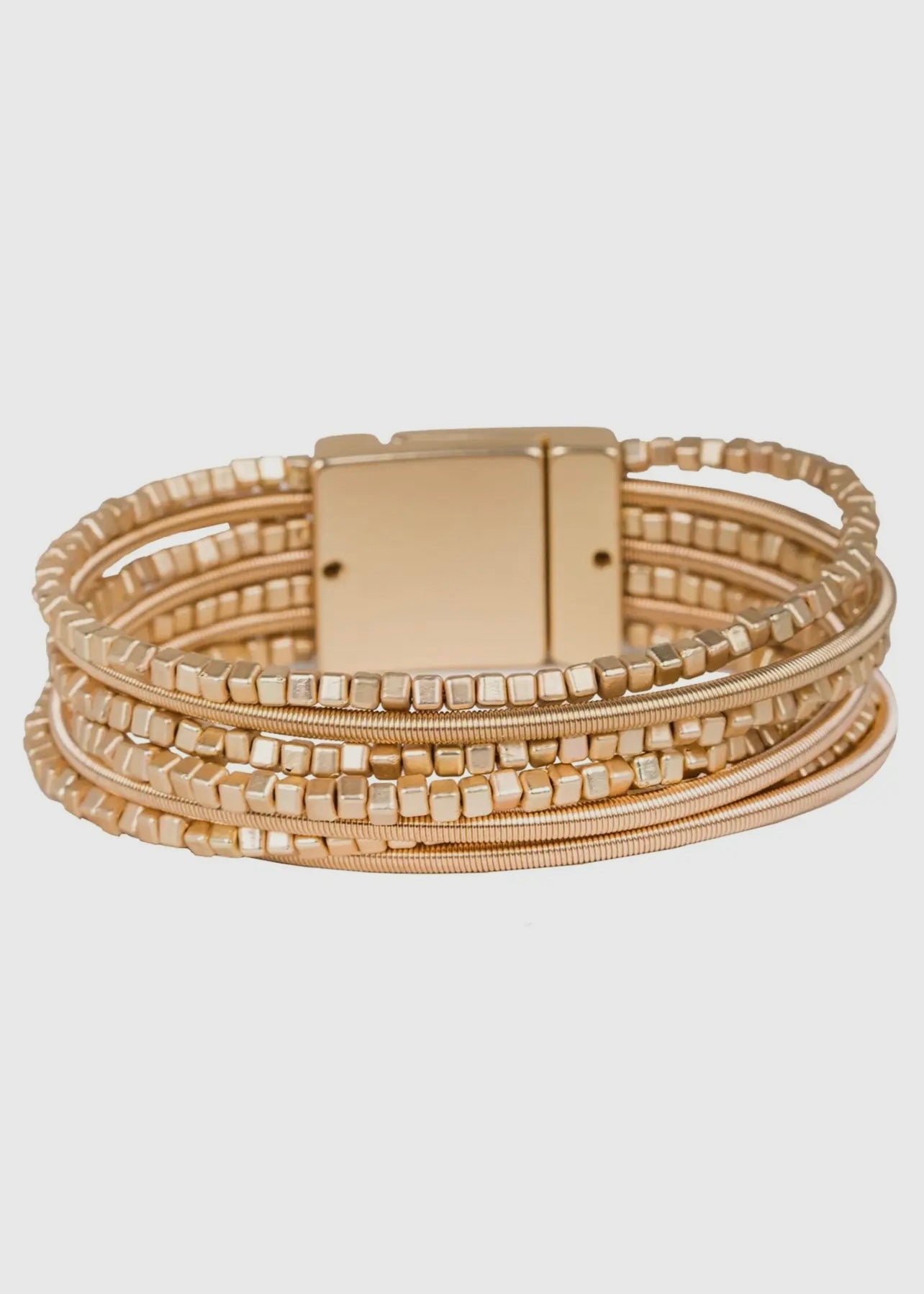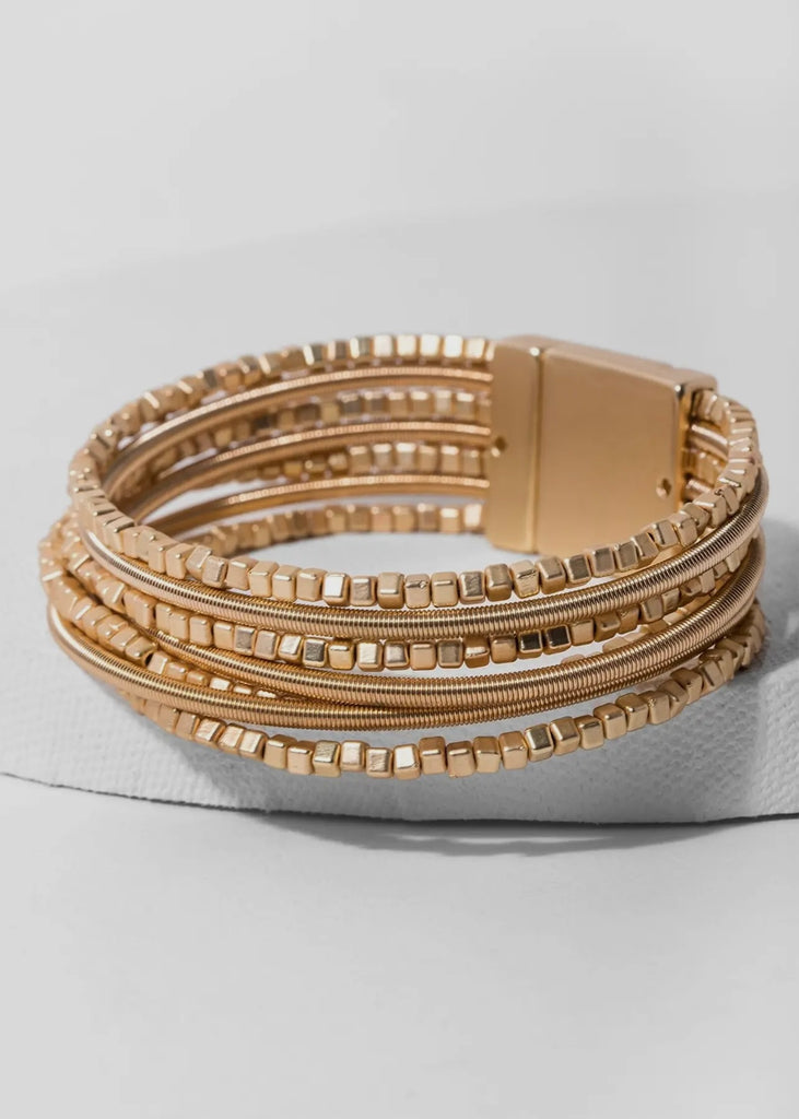 With strands of metallic gemstone beads and shimmering rope-like details, this bracelet is perfect for a night out or special occasion like a wedding