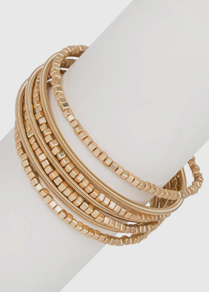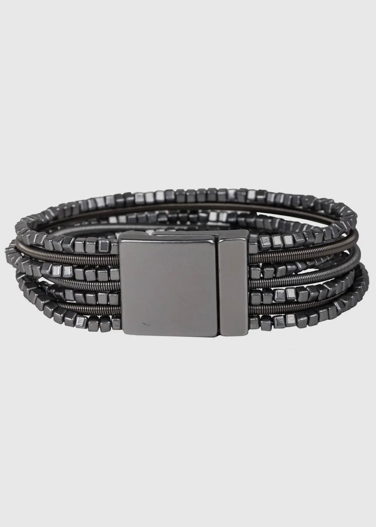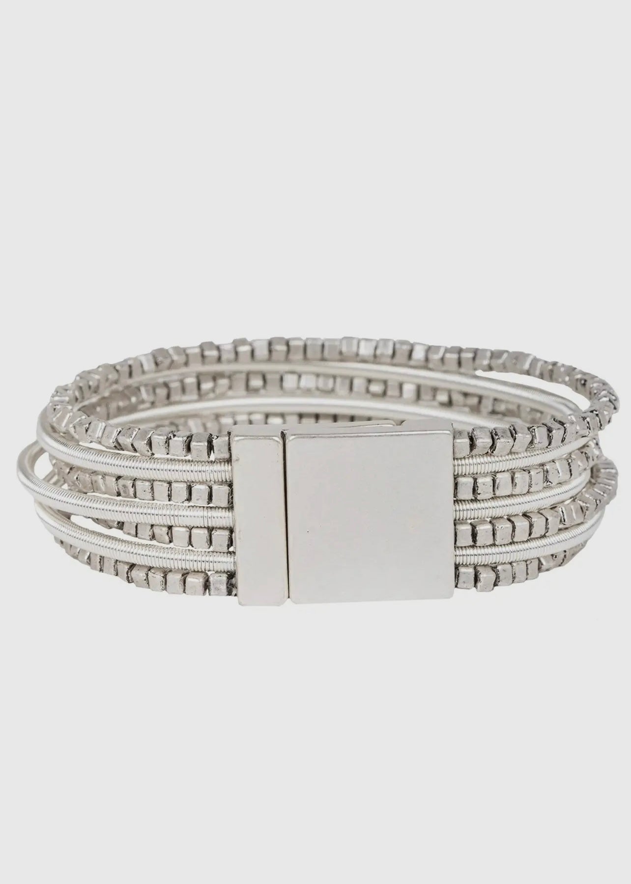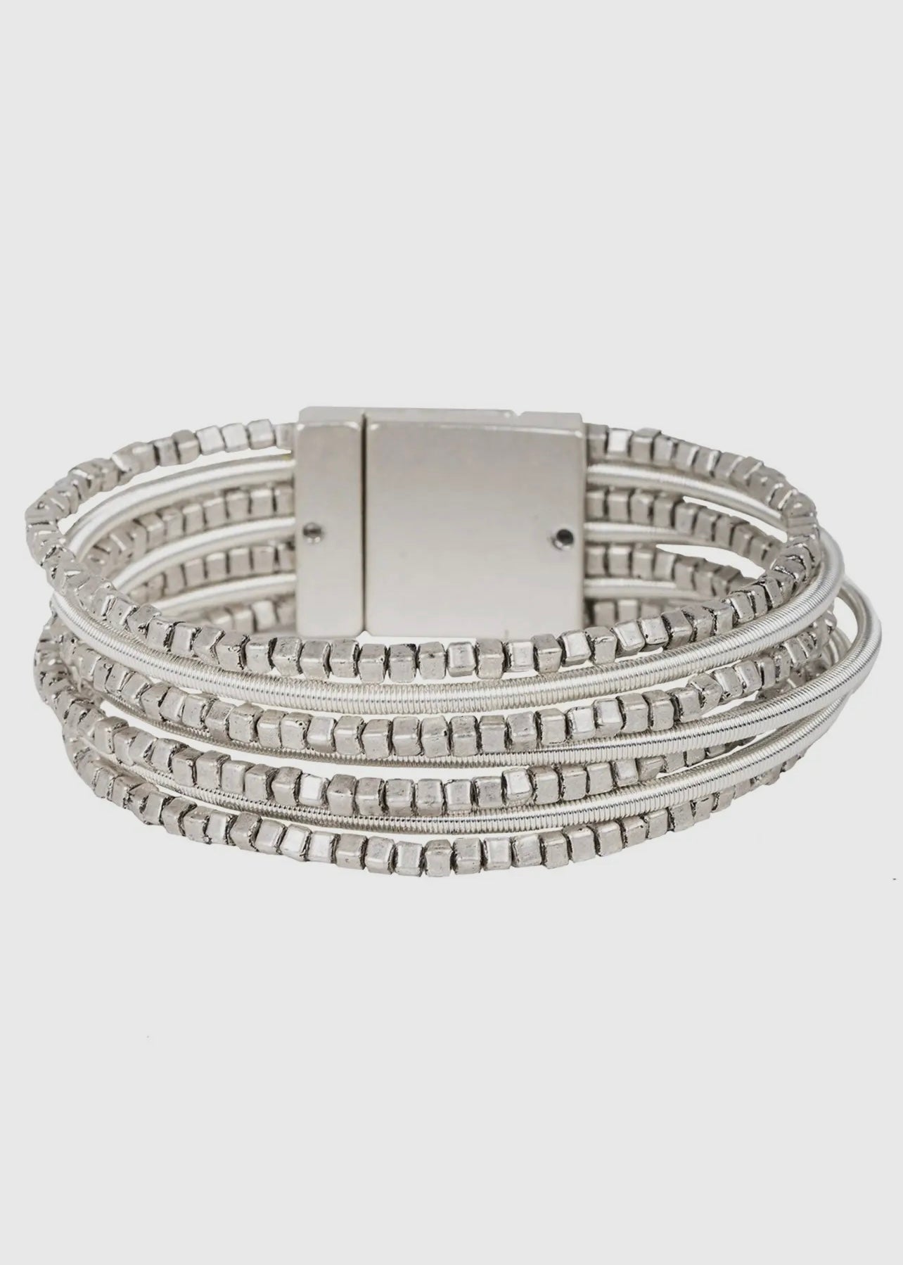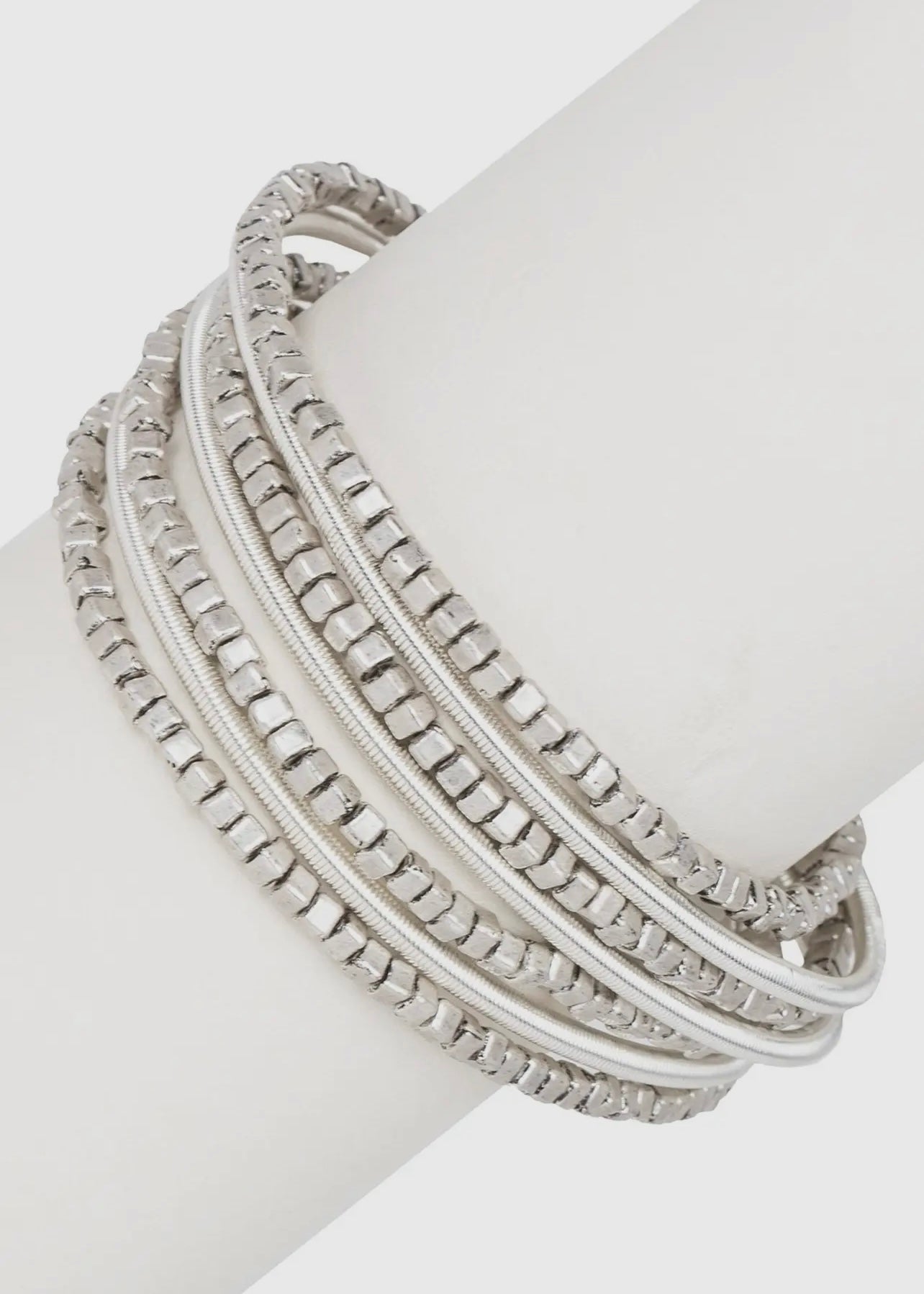 With strands of metallic gemstone beads and shimmering rope-like details, this bracelet is perfect for a night out or special occasion like a wedding