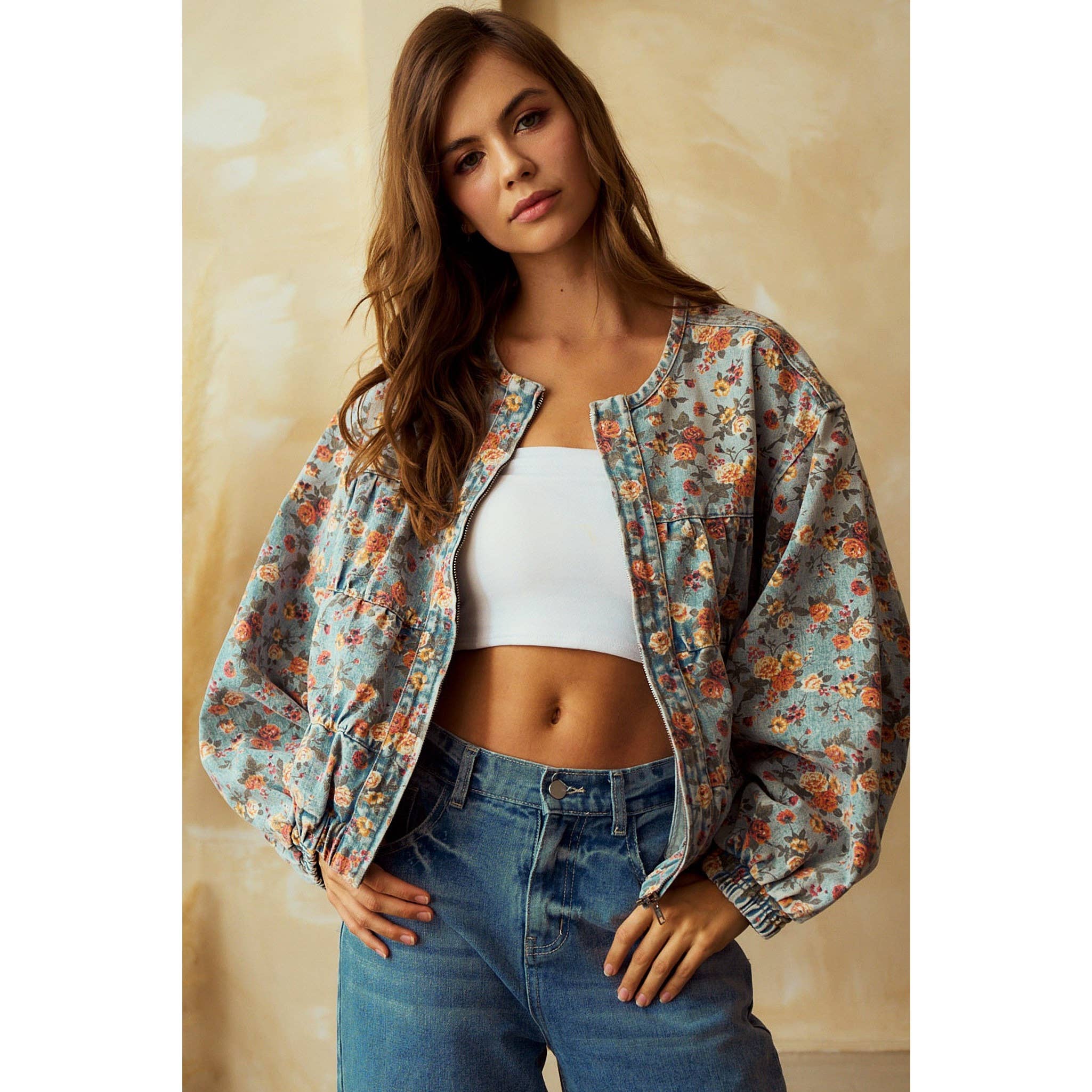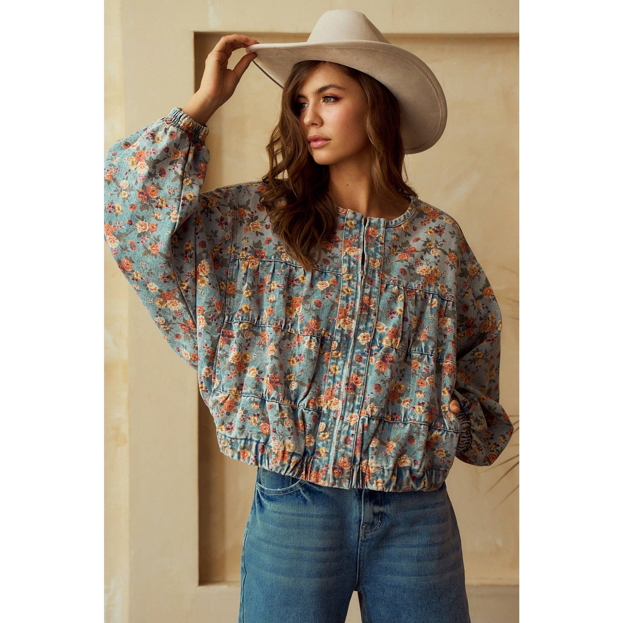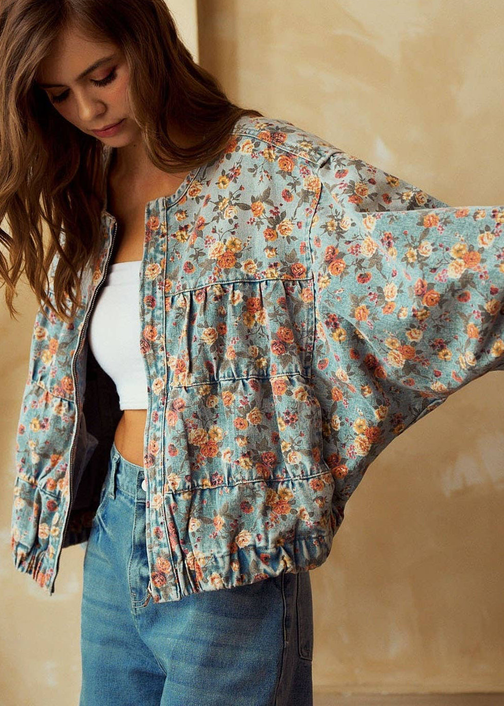 The Field of Dreams Jacket features a vintage floral print and a washed finish, providing a soft, worn-in appearance