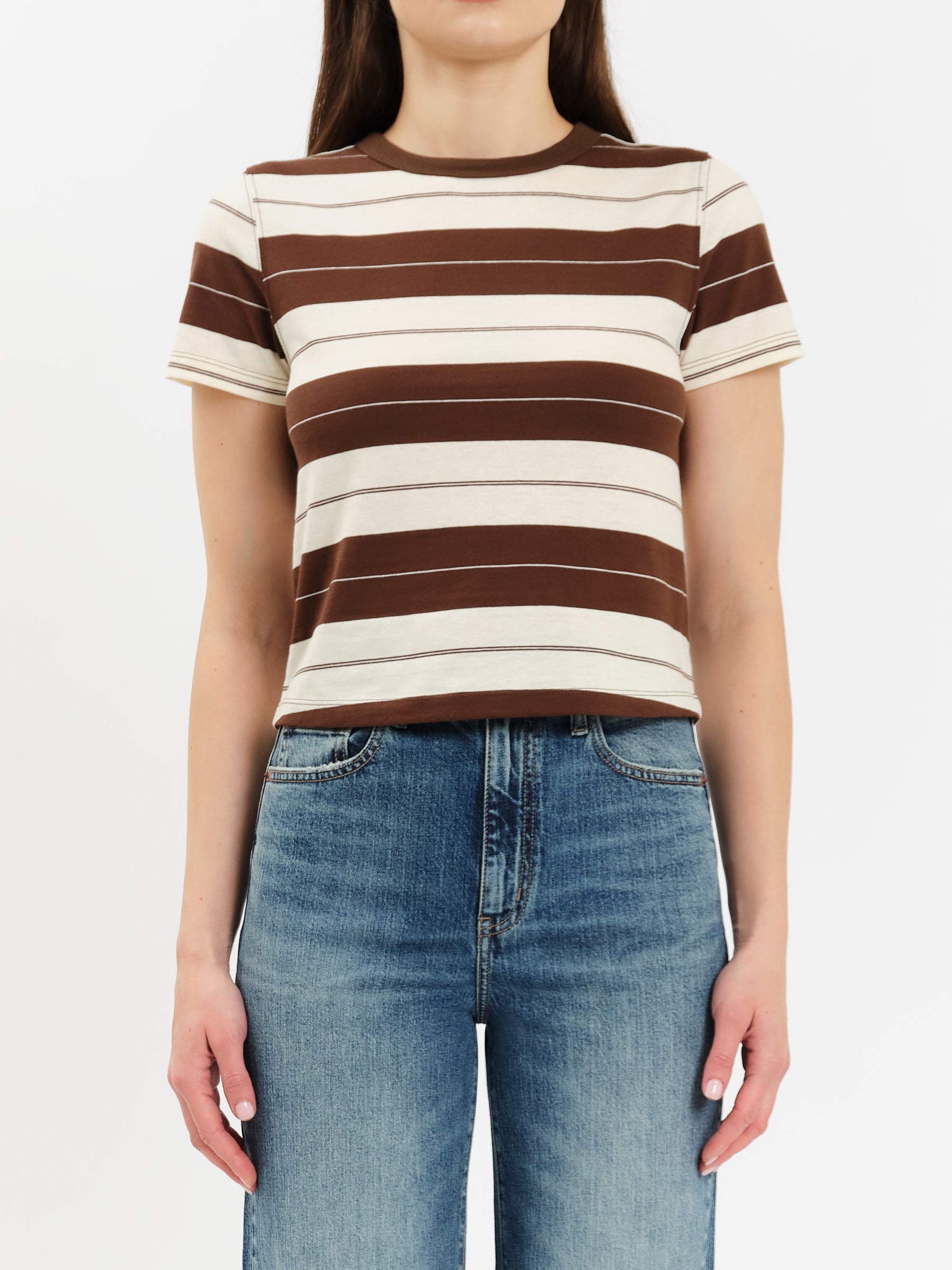 The Zuma Short Sleeve Crew Neck Tee is an everyday essential with a playful edge. Designed with a classic crew neckline and fitted silhouette, this tee features a shadow stripe pattern that adds just the right amount of visual interest while still styling like a neutral. Easy, flattering, and endlessly wearable, it’s the kind of top you’ll reach for on repeat.